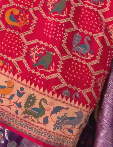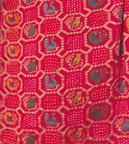 Blood Red Authentic Hand Bandhej Georgette Banarasi Shikargah Zari Jaal  silk Saree with Paithani Pallu and Border | SILK MARK CERTIFIED