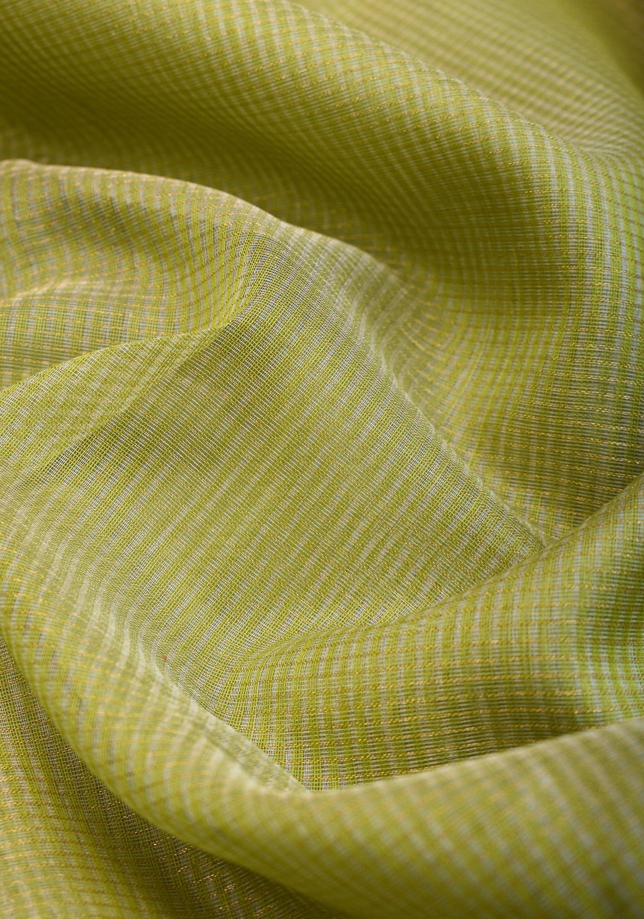 This saree comes in  Green with zari checks and self border weave for added shimmer.