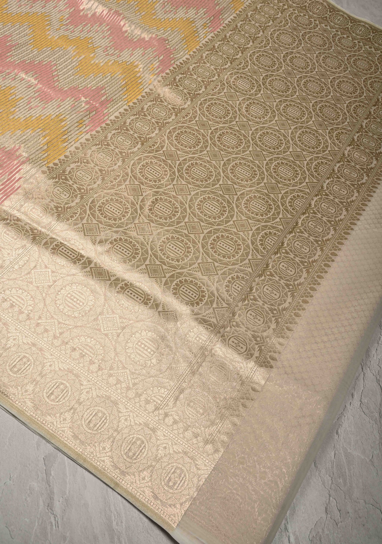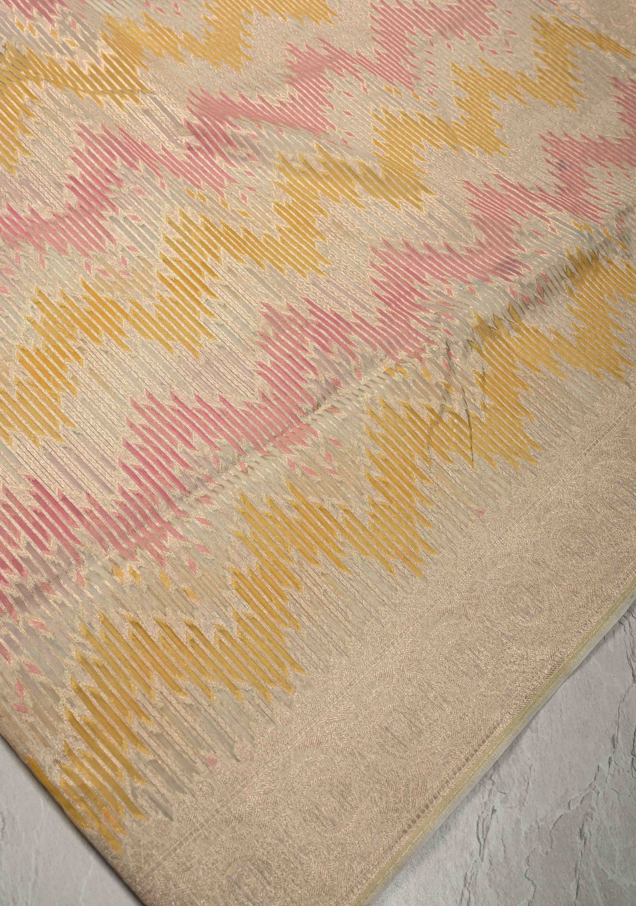 Pastel Hued Rangkaat Style on Banarasi Semi Kora Saree with Chevron Pattern and Zari Border