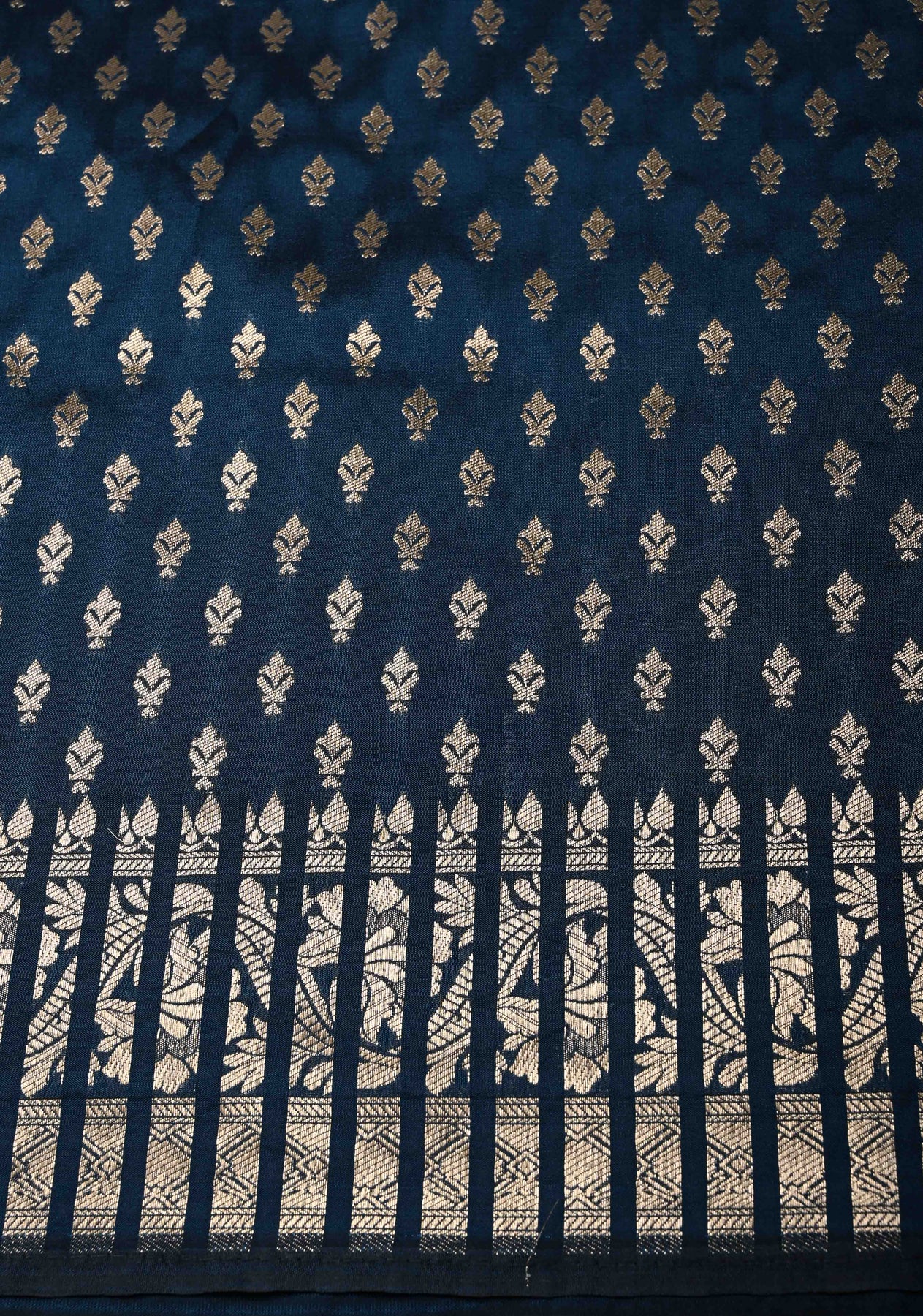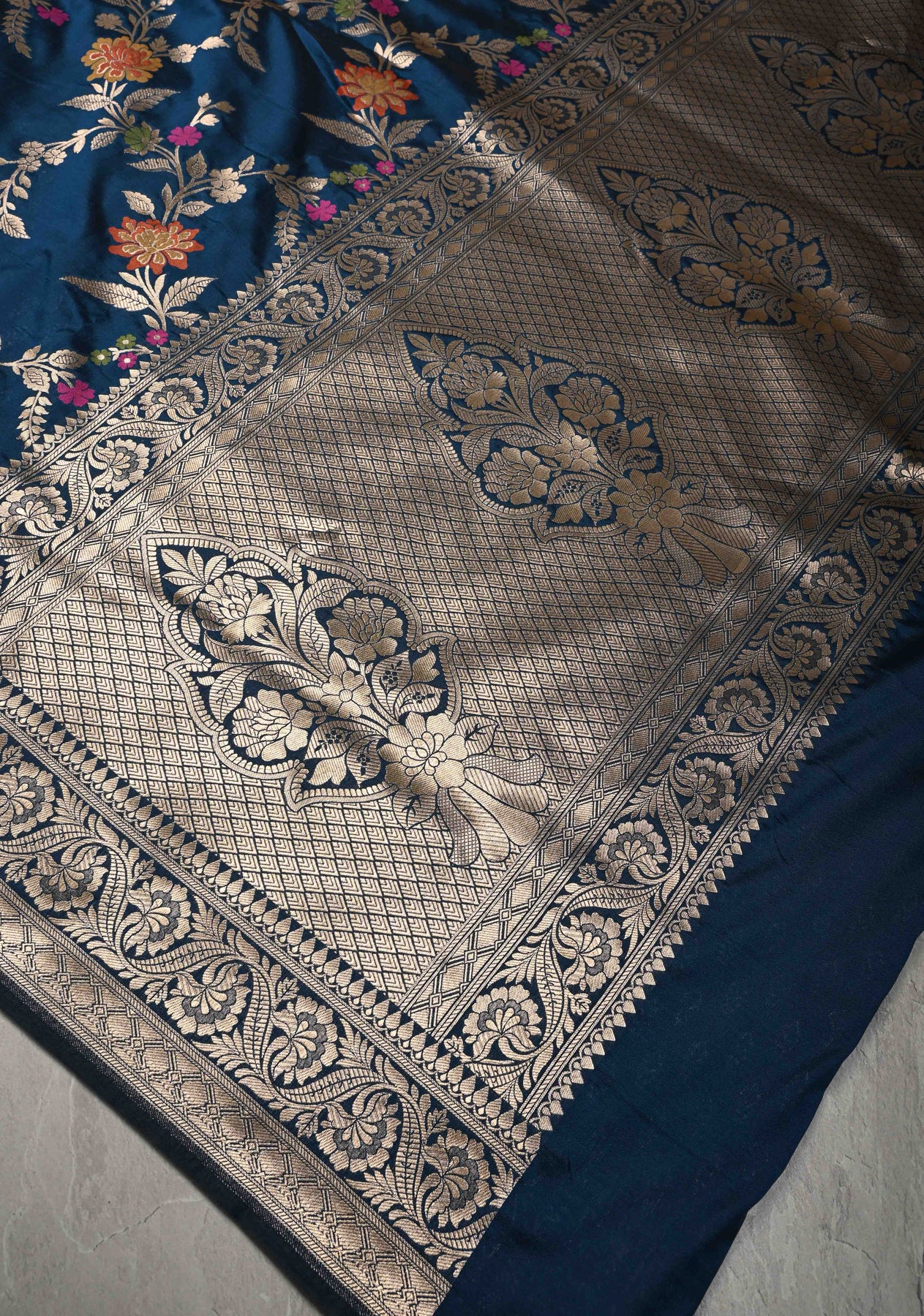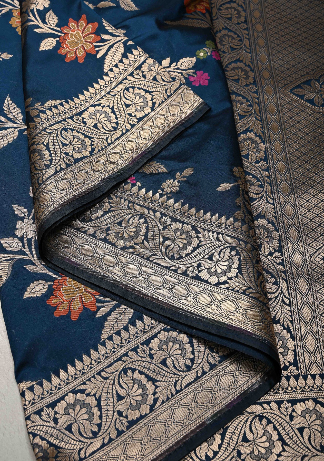 Prussian Blue Semi Silk Saree with Floral Meenakari Jaal and Zari Border