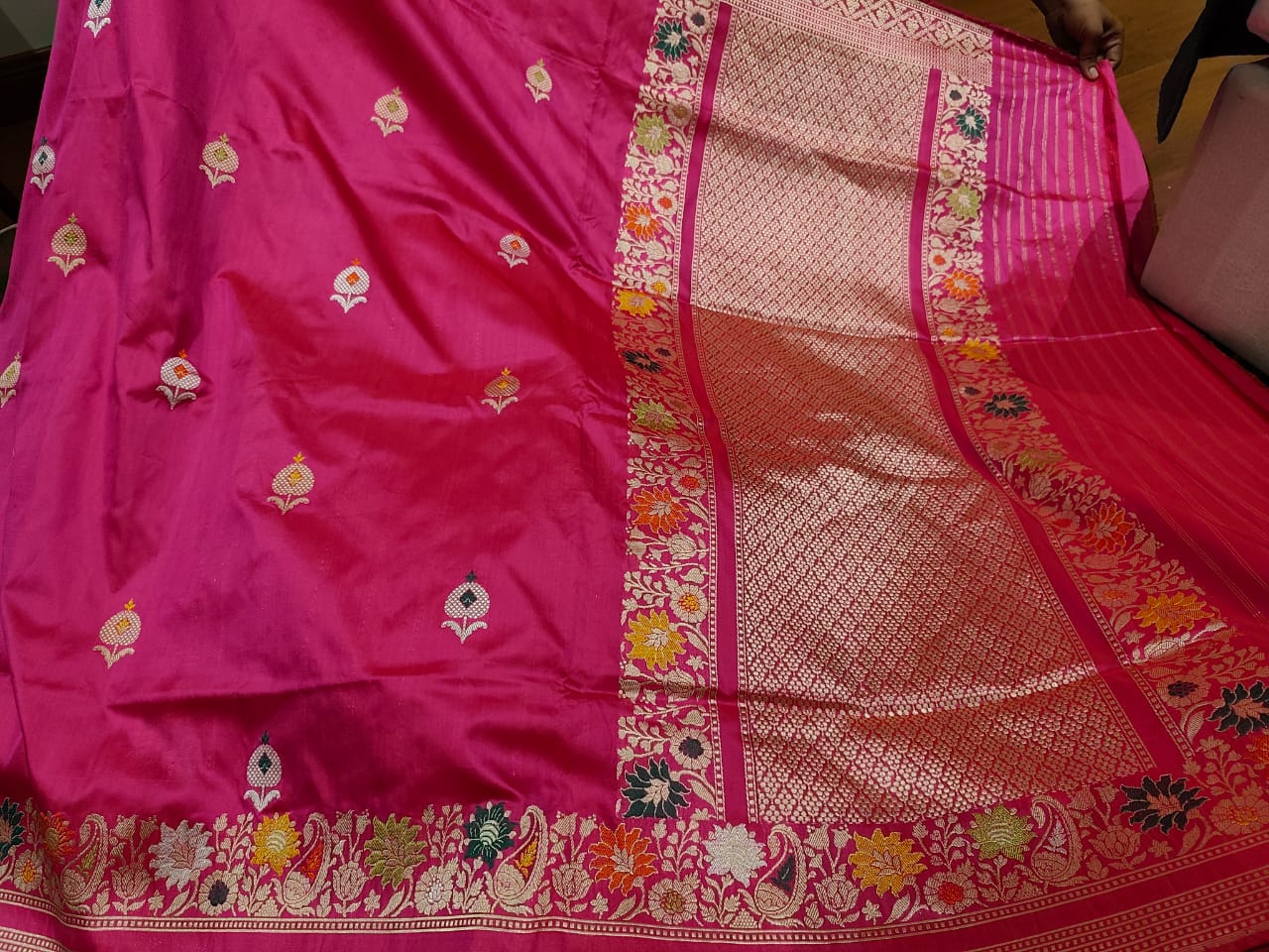 Rani Pink Banarasi Pure Silk Saree with Floral Ornate Meenakari Butta and Border | SILK MARK CERTIFIED