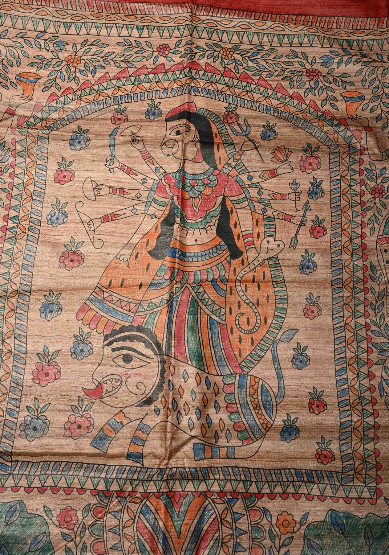 Red Tussar Madhubani Hand-Painted Saree  | SILK MARK CERTIFIED
