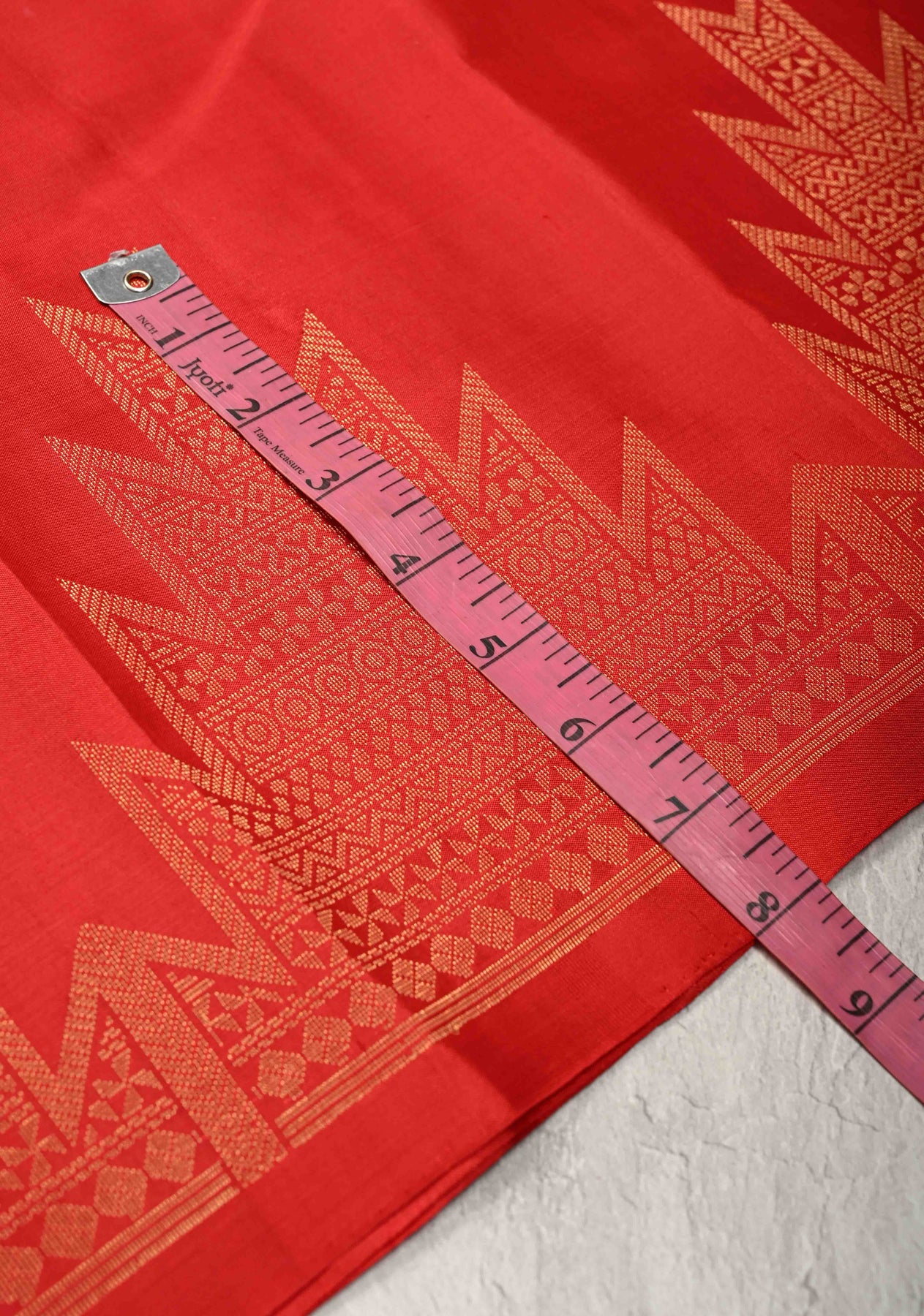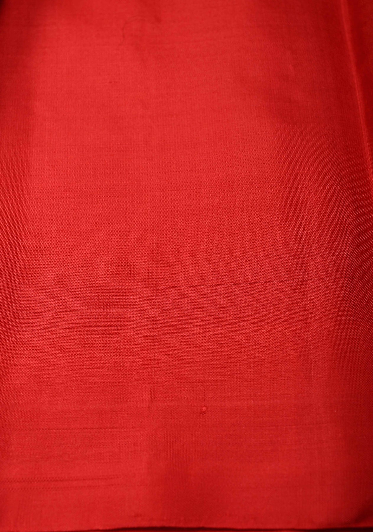 This stunning Scarlet Red Kanjivaram Soft Silk Saree is a blend of traditional elegance and modern grace. The body is adorned with intricately woven floral buttas, adding a touch of delicate charm to the rich silk base. A striking temple zari border in gold enhances the overall look, giving it a bold and regal finish. The soft silk drapes gracefully, offering both comfort and grandeur for any occasion. Perfect for weddings, festive celebrations, or cultural events, this saree is a timeless piece in a vibrant, auspicious hue. Its intricate craftsmanship reflects the rich legacy of Kanjivaram weaving.