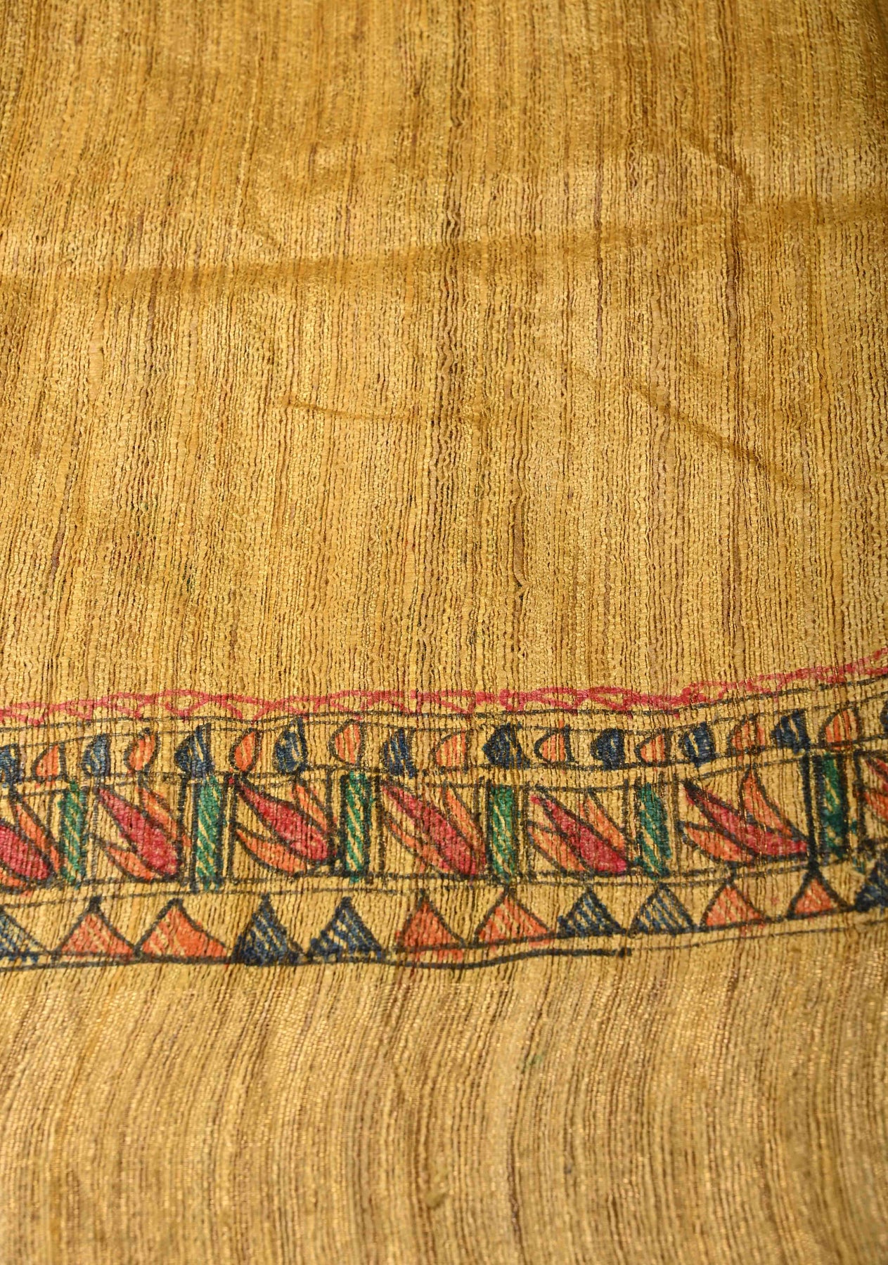 Yellow Madhubani hand painting on Geecha Tussar Silk Saree | SILK MARK CERTIFIED