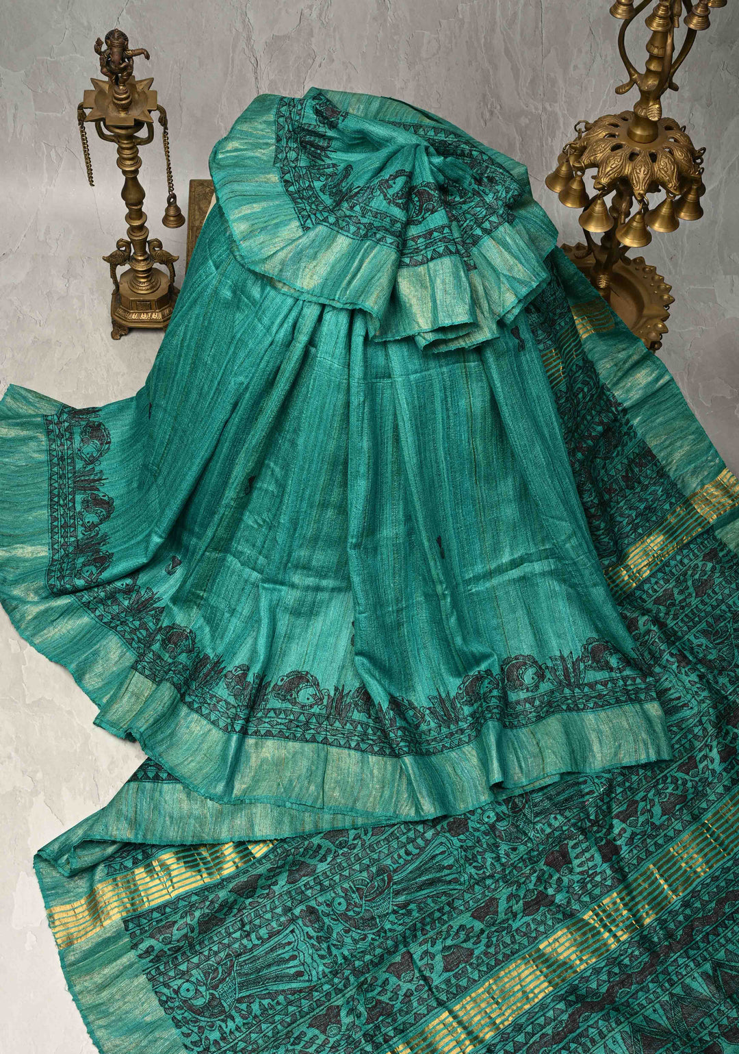 This Ajrakh Hand Block Print Saree is rich in cultural history, having been practiced since the Harrapan civilization. This classic look is painstakingly crafted using a dozen unique steps involving natural dyes, precision block printing, and post-treatment. The result is an exquisite saree with many stories to tell!