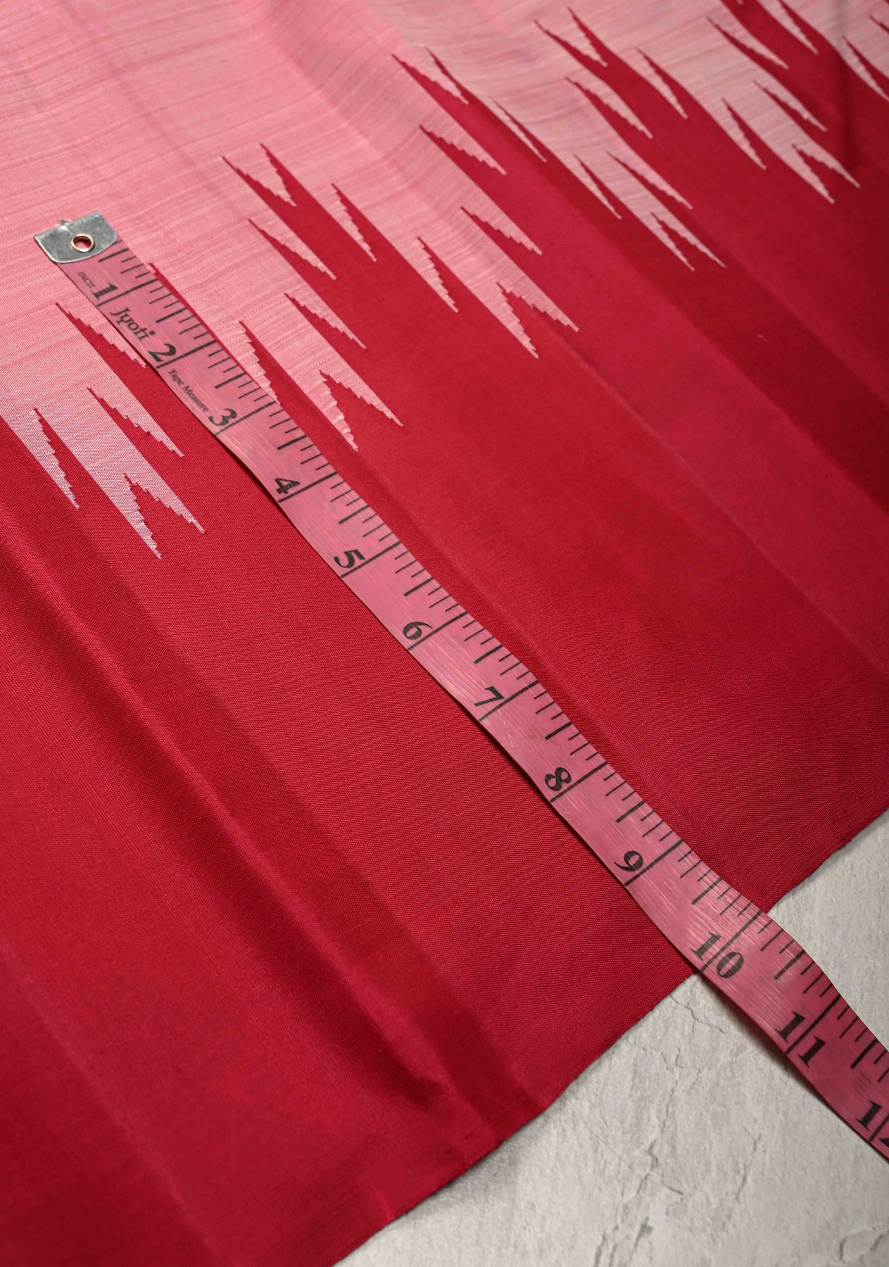 This elegant Rose Pink Kanjivaram Silk Saree is a beautiful expression of understated tradition and timeless grace. Woven from premium pure silk, the saree features a soft, radiant rose pink body that exudes charm and femininity. Its standout feature is the zariless contrast temple border — a striking design element that adds bold definition without the use of metallic threads, making it lightweight yet impactful. The clean, architectural lines of the temple motifs lend a classic South Indian touch, creating a harmonious balance between simplicity and sophistication. Ideal for daytime events, pujas, and traditional functions, this saree is perfect for those who appreciate minimalism with cultural depth.