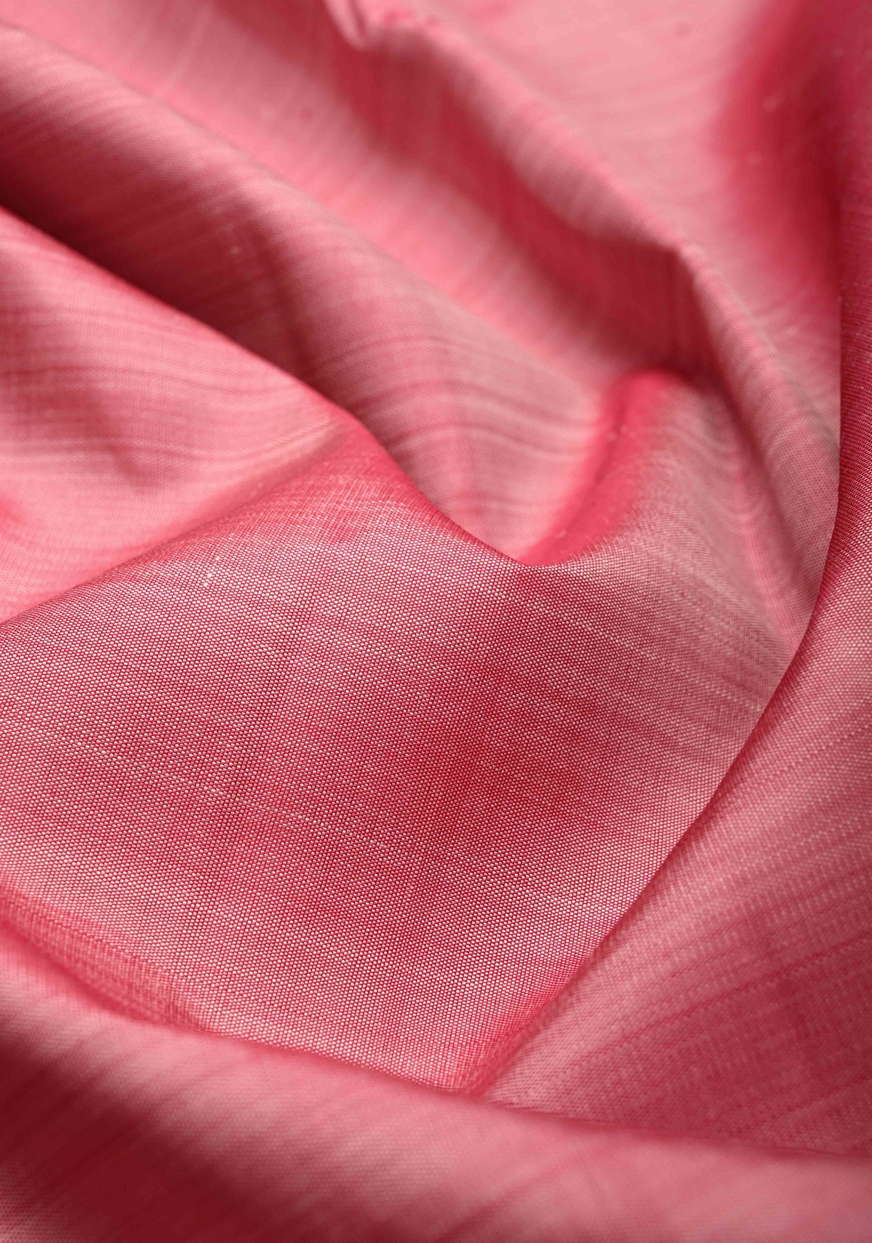 Rose Pink Kanjivaram Silk Saree with Zariless Contrast Temple Border | SILK MARK CERTIFIED