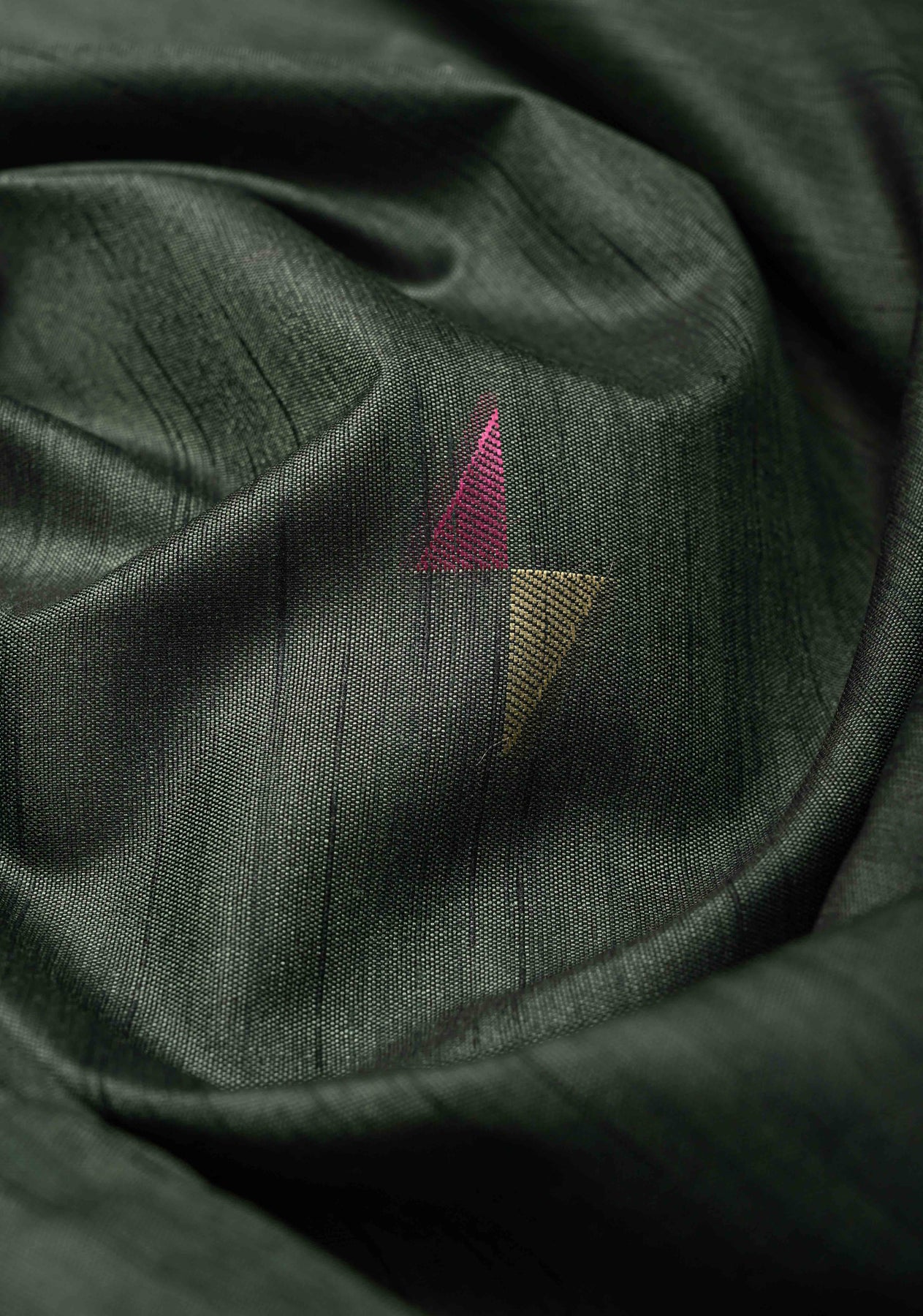 The rich green body is adorned with intricate Meenakari buttas, delicately woven in multicolored threads that add depth and festive charm. The saree is beautifully finished with a bold multicolor temple border, inspired by South Indian temple architecture, bringing a touch of tradition and vivid contrast to the overall design.
