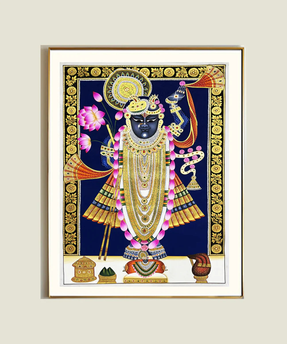 Shrinath ji Pichwai Hand Painting Wall Art On Cloth 36" x 24"(Unframed)