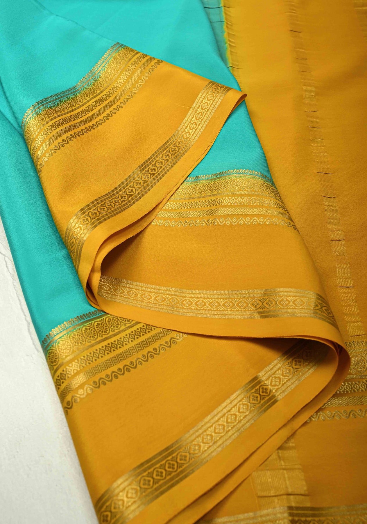 KSIC Grade Thickness Anand Blue Pure Mysore Silk Saree with Contrast Zari Border | SILK MARK CERTIFIED