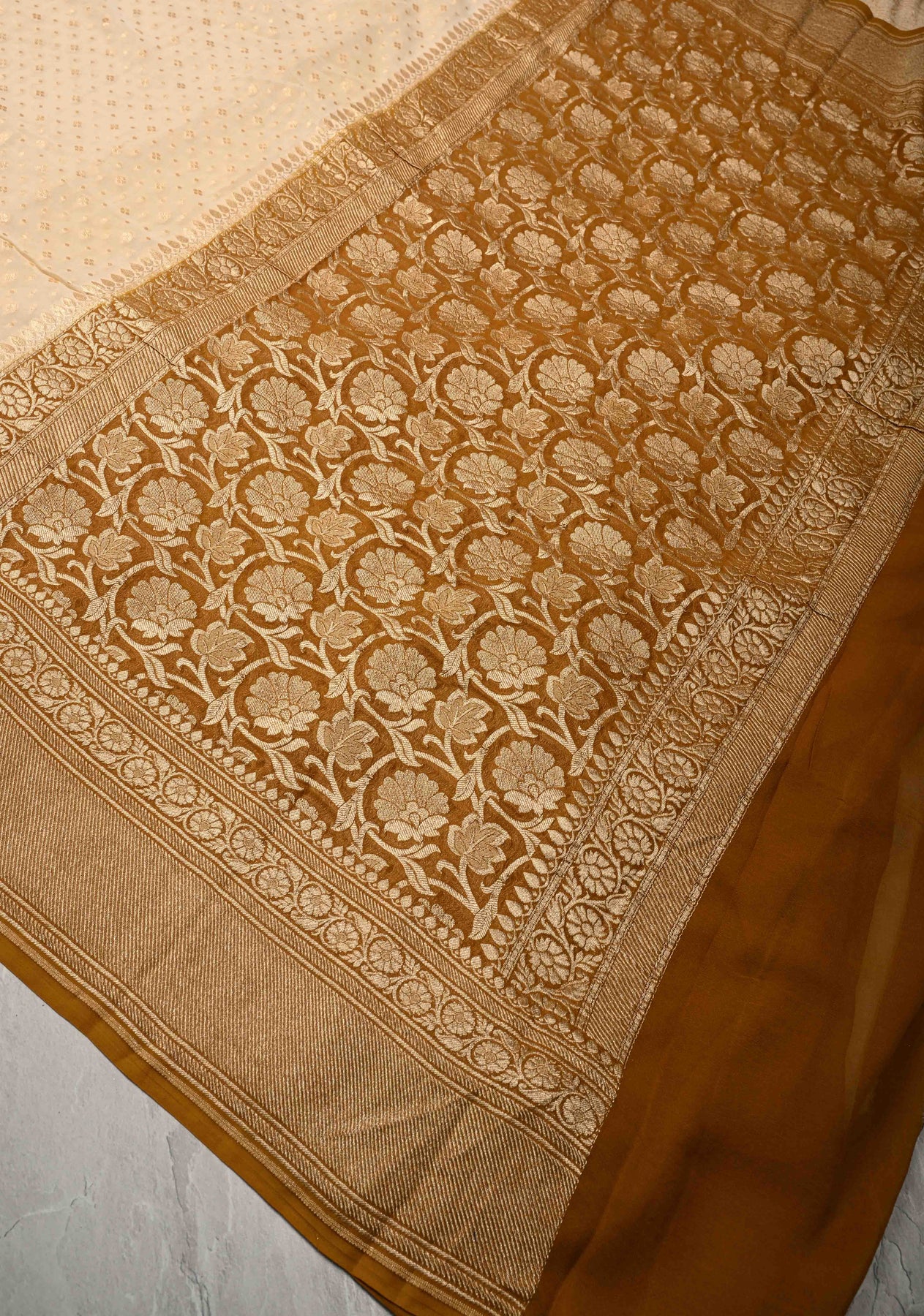Experience understated elegance with this beautiful Beige Banarasi Georgette Silk Saree, where classic charm meets contemporary style. Woven from soft, flowing georgette silk, the saree features intricate floral brocade work that adds texture and timeless appeal to the subtle beige canvas.