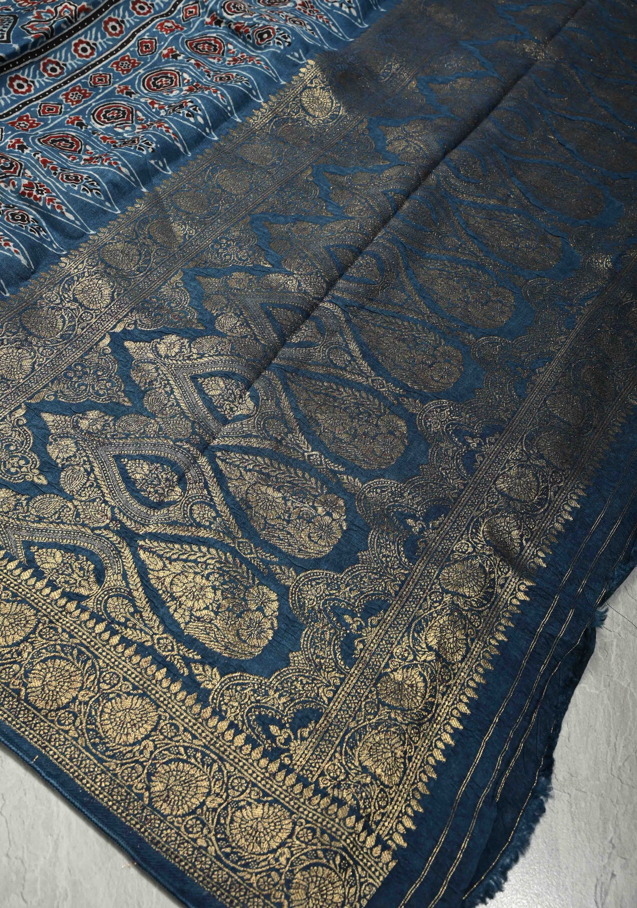 *Note: This is a handmade saree and there may be slight inconsistencies such as in it's weaving and print. These are characteristic of handmade products and attest to their originality and are not considered as defects.