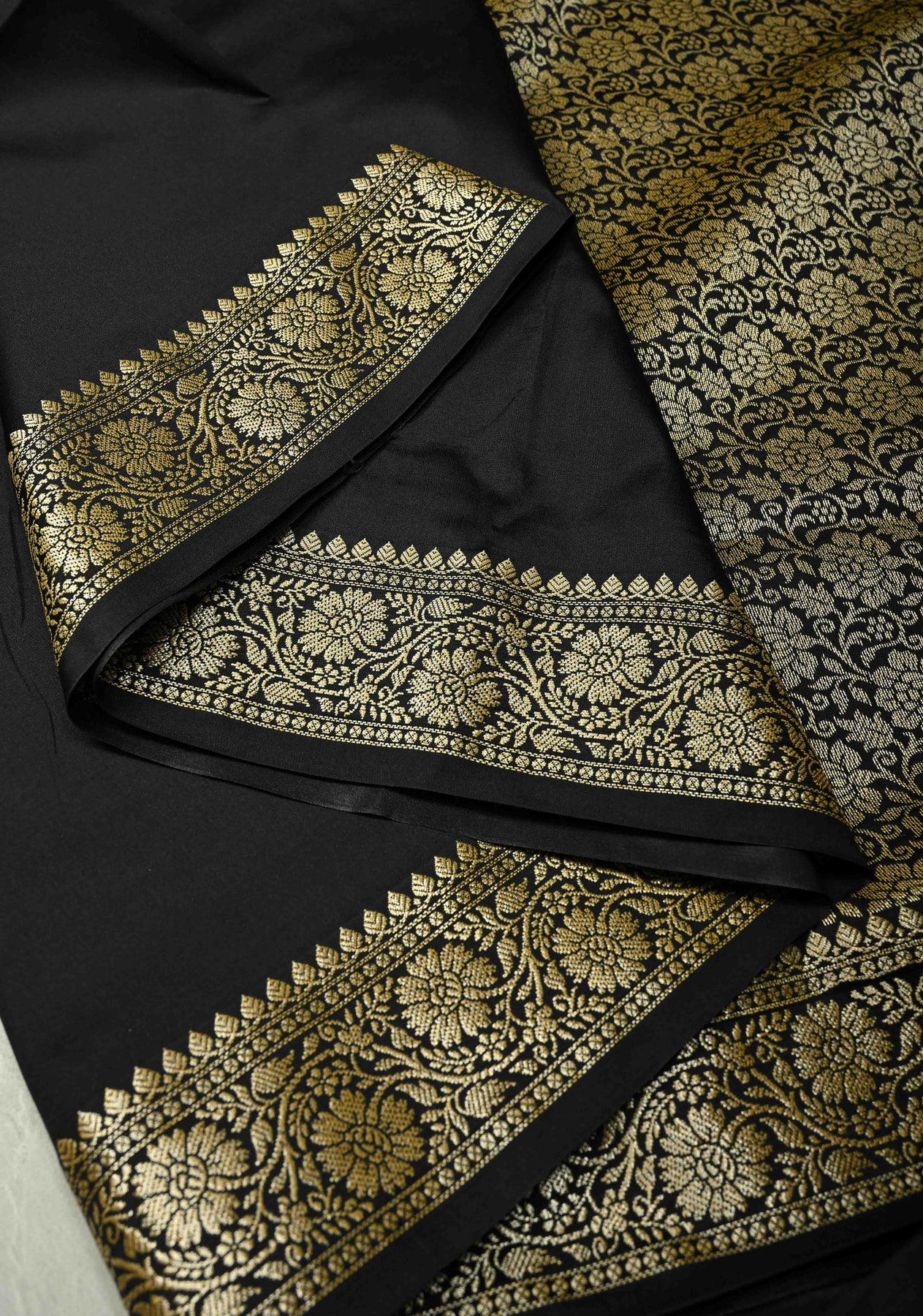 Black Semi Silk Saree with Zari Border