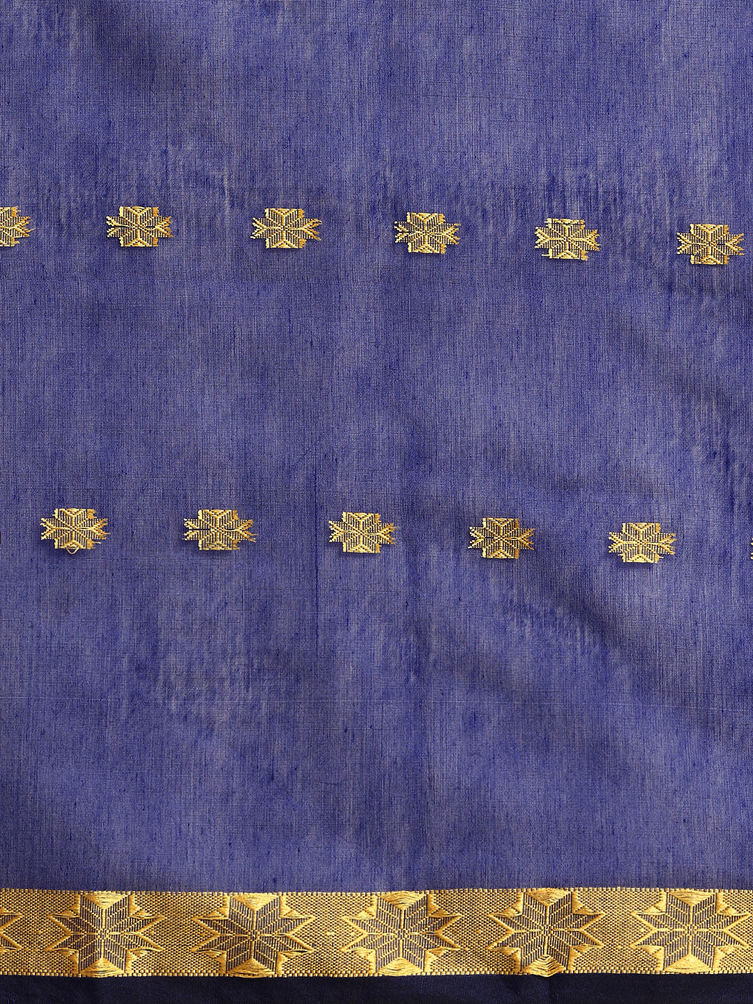 This Blue and Red Zari Buti Silk Cotton Saree beautifully captures the essence of traditional elegance. Crafted from fine silk cotton, it features intricate zari butis woven across the body, adding a subtle golden shimmer. The vibrant contrast red pallu enhances its visual appeal, creating a stunning balance of color and craftsmanship. Soft, lightweight, and easy to drape, this saree is perfect for festive occasions, cultural events, and elegant day or evening gatherings.