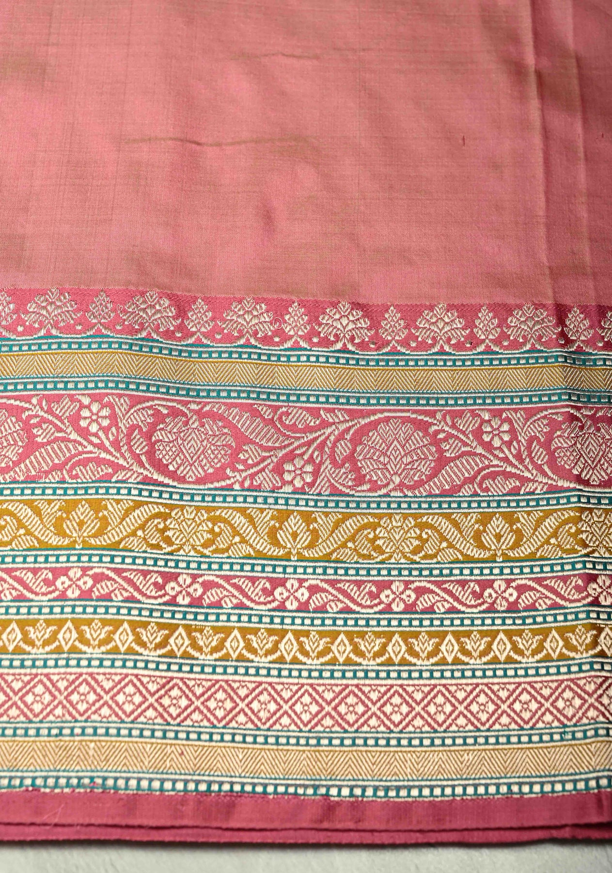 This Taupe Katan Silk Handloom Saree exudes understated elegance and timeless charm. Handwoven from fine Katan silk, it features delicate Zari buttas that shimmer subtly across the body, adding a touch of luxury. The saree is enhanced by a beautifully crafted Meenakari border, showcasing intricate artistry and traditional craftsmanship. Lightweight and gracefully draping, it is perfect for weddings, festive occasions, or any special celebration, offering a blend of sophistication and classic Indian heritage.