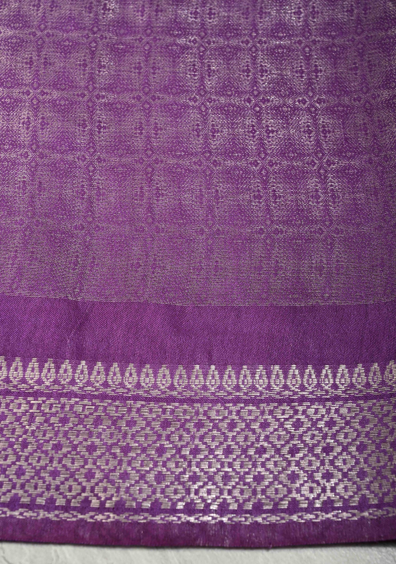 The saree is accentuated with a contrast silver zari border, lending a traditional yet contemporary charm. Perfect for festive occasions, cultural events, and formal gatherings, it pairs beautifully with silver or antique jewelry for a refined, graceful look.