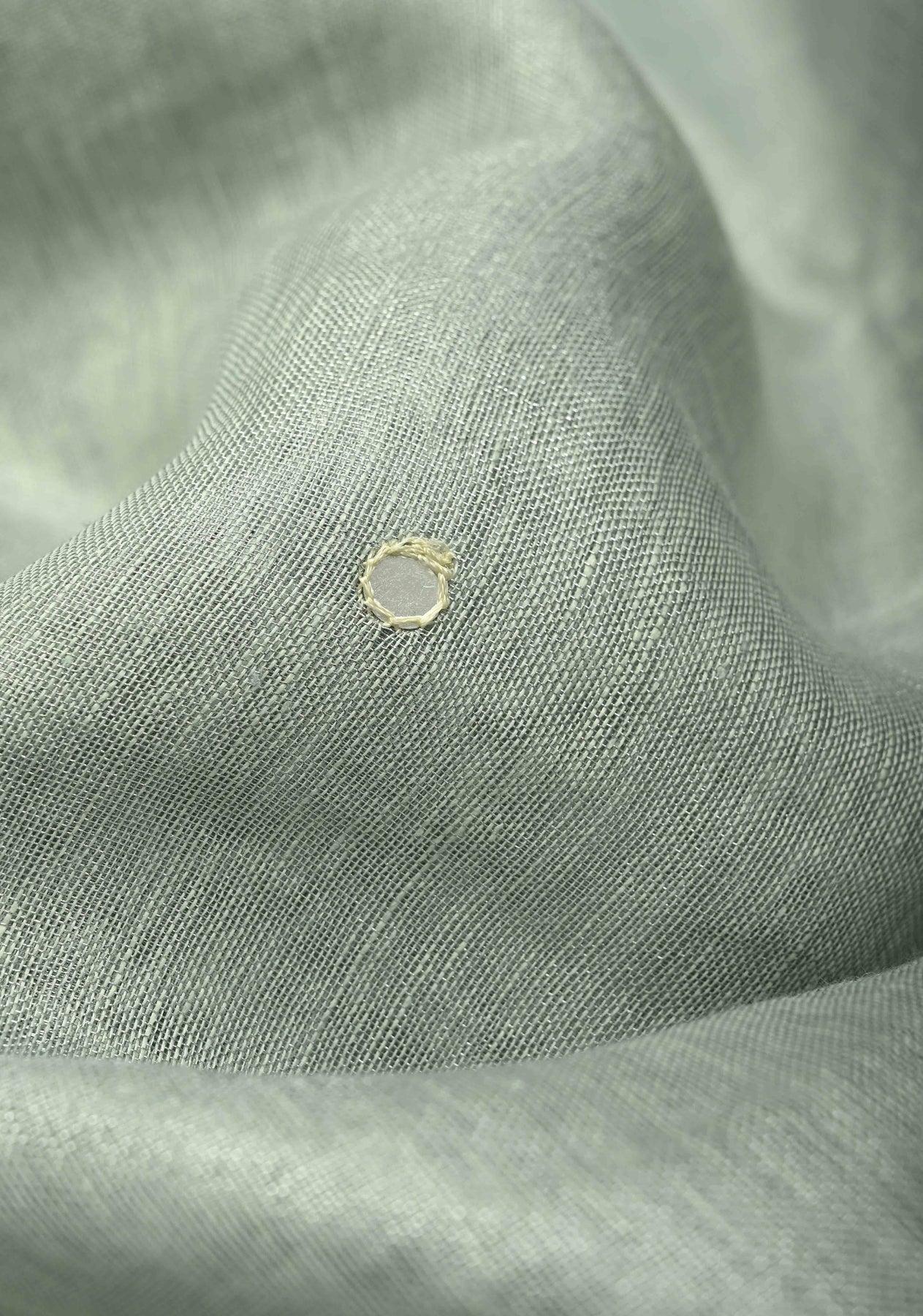 This Silver Tissue Linen Saree is a captivating blend of shimmer, texture, and intricate craftsmanship. The lightweight tissue-linen fabric lends a graceful drape with a soft metallic sheen that elevates its festive appeal. Adorned with delicate cutwork and sparkling mirror work, the saree exudes refined elegance and artisanal beauty. The highlight of the design is its dramatic fancy net tassels, adding a contemporary twist and a touch of glamour to the traditional silhouette. Perfect for parties, receptions, and special celebrations, this saree is a true statement piece that stands out effortlessly.