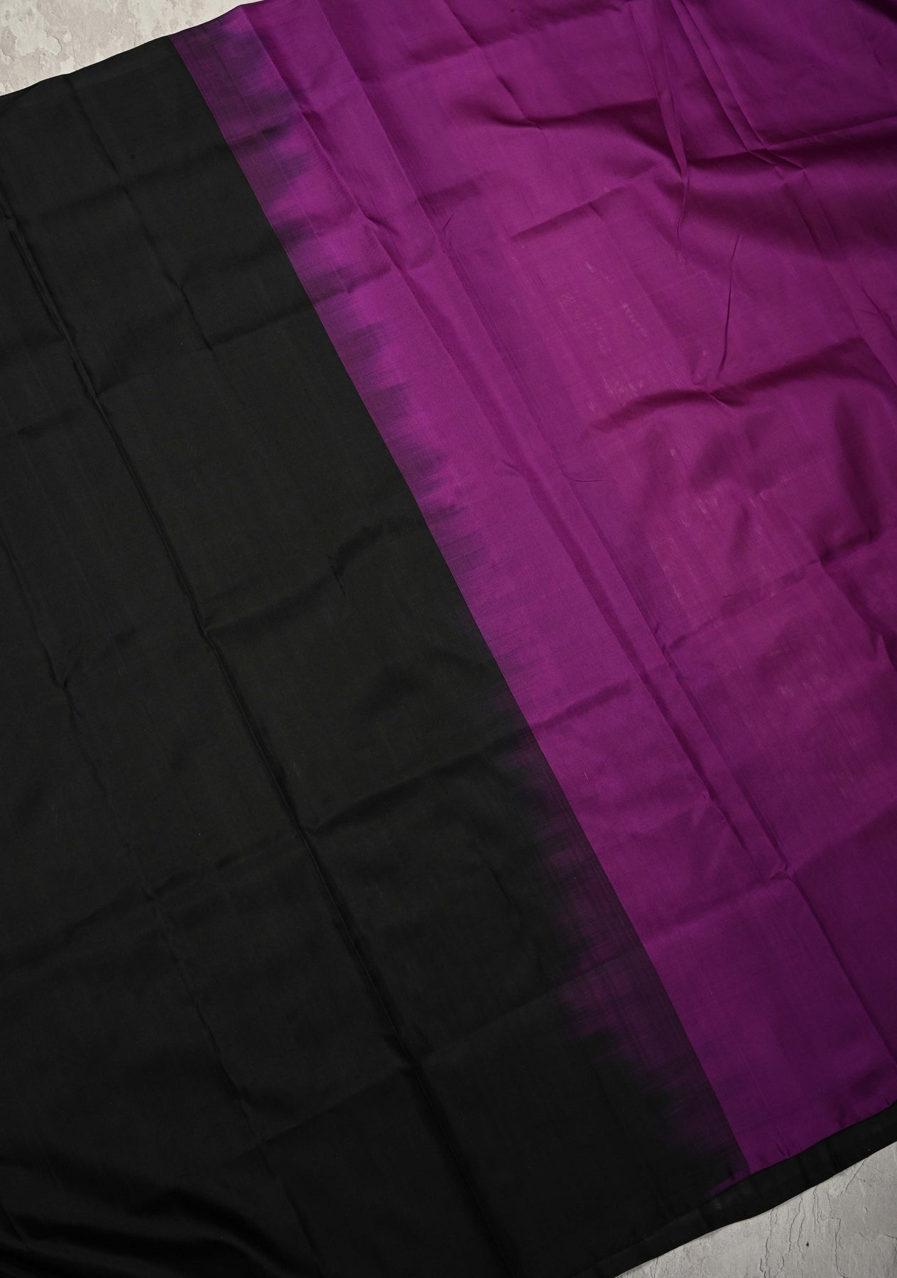 The 3-Part Uppada Handloom Silk Saree in Cream-Black and Purple with Borderless Uppada Handloom Silk Saree is a stunning showcase of contemporary elegance blended with traditional craftsmanship. Handwoven in silk, the saree features a unique panel pattern in a harmonious blend of cream, black, and purple tones, offering a bold yet refined aesthetic. The absence of borders enhances its modern appeal, allowing the rich color transitions and textures to take center stage. Lightweight with a graceful drape, this saree is perfect for festive celebrations, or sophisticated evening events—making a statement with every fold.