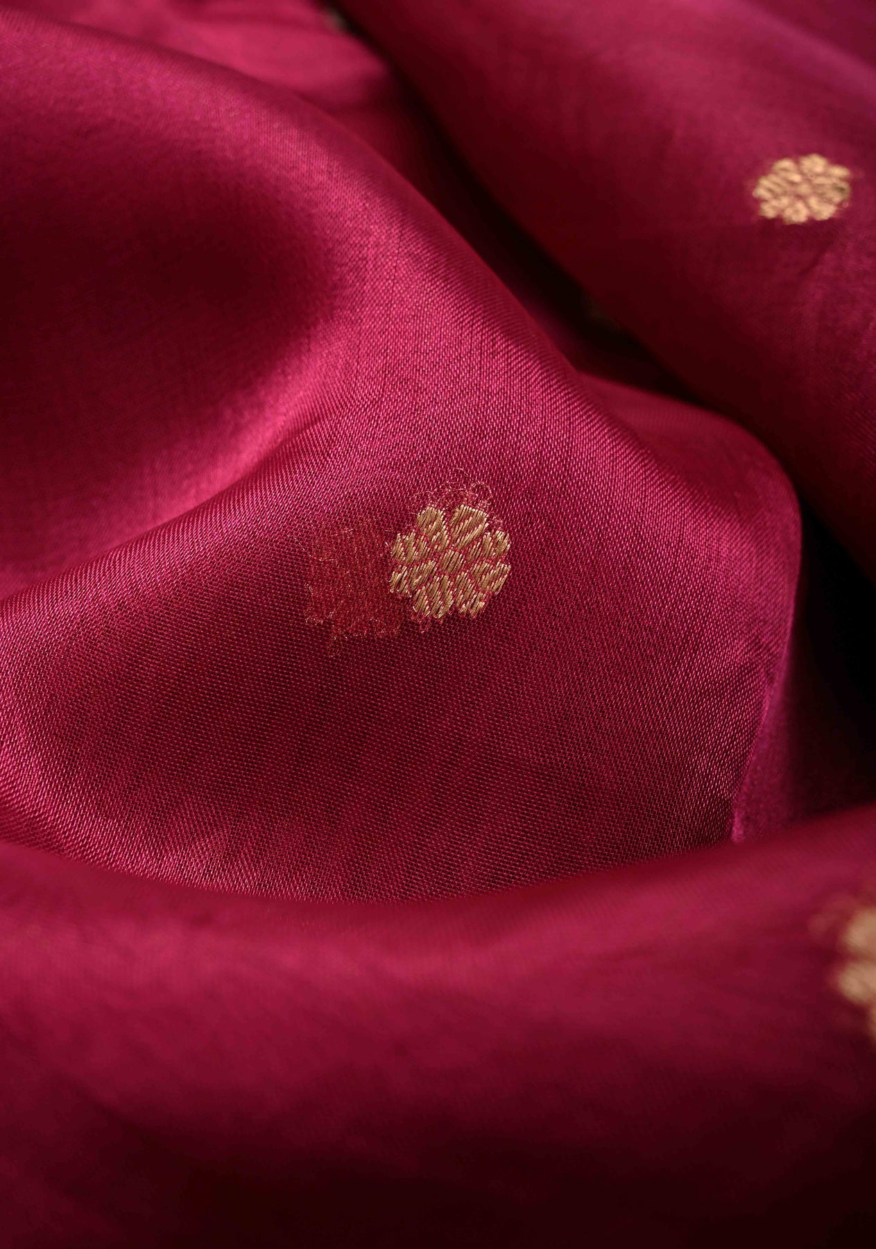 Magenta Organza Silk Saree with Sona Rupa Chunri Buttis and Scallop Fancy Lace Border | SILK MARK CERTIFIED