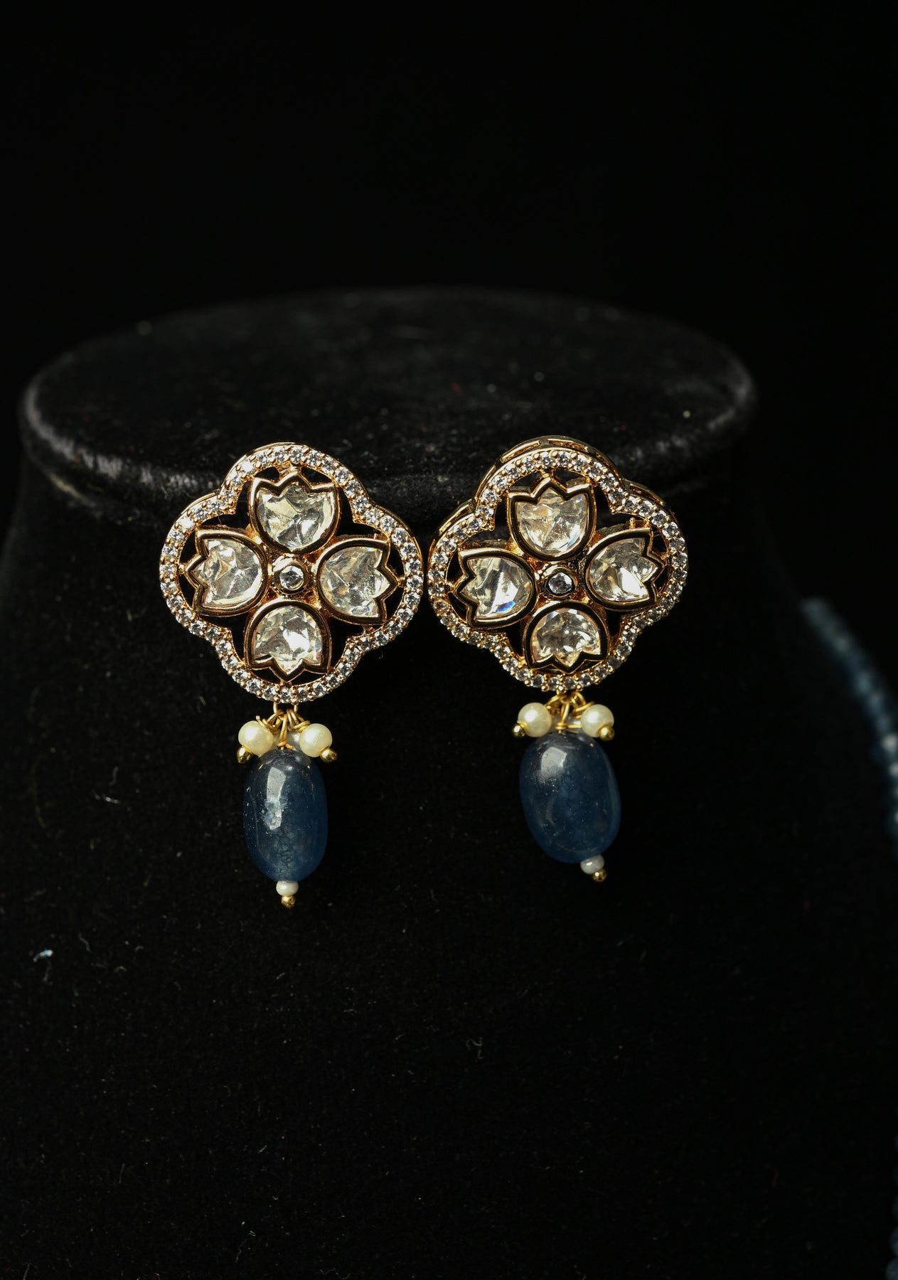 The Kundan Grey Beaded Choker Set is a striking blend of traditional craftsmanship and contemporary style. This exquisite choker features intricate Kundan work accented with elegant grey beads, creating a sophisticated and unique design that stands out. The matching earrings perfectly complement the choker, completing a harmonious and stylish look. Ideal for weddings, festive celebrations, or special occasions, this set adds a touch of glamour and refinement to any outfit. With its meticulous detailing and elegant finish, the Kundan Grey Beaded Choker Set is a must-have accessory for those who love to make a statement with their jewelry