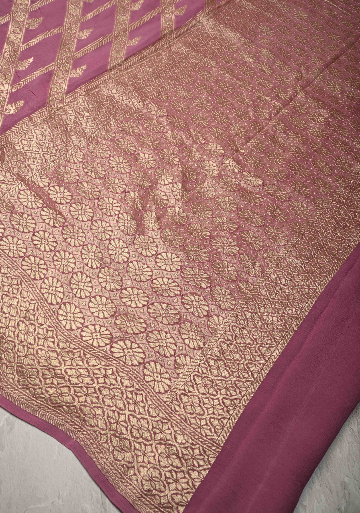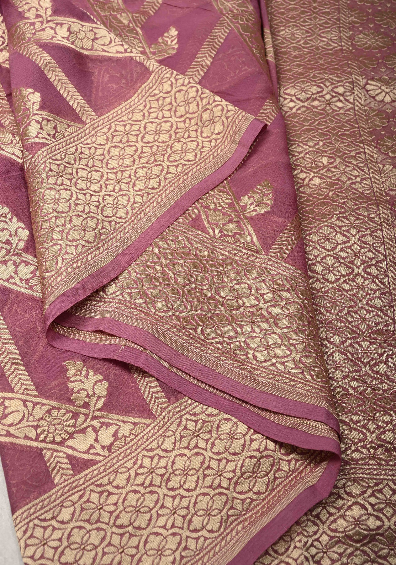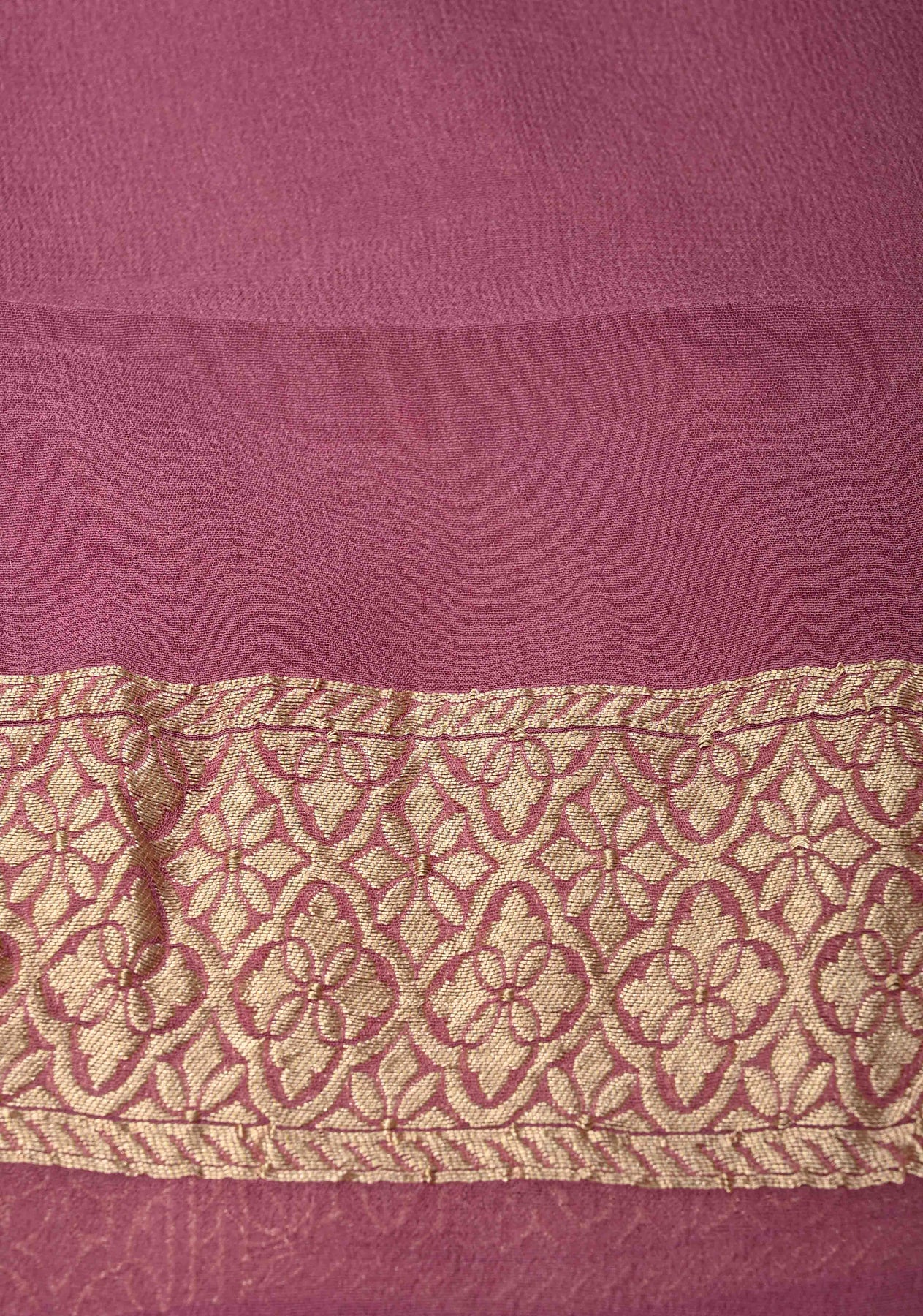 This Onion Pink Banarasi Georgette Silk Saree is a perfect blend of contemporary style and traditional artistry. Made from lightweight, flowing georgette silk, it offers a graceful drape and comfortable wear. The saree is adorned with striking geometric designs that add a modern edge to its classic appeal, while the intricate zari border lends a touch of opulence and elegance. Ideal for festive events, weddings, or special occasions, this saree is a versatile and timeless addition to any ethnic wardrobe