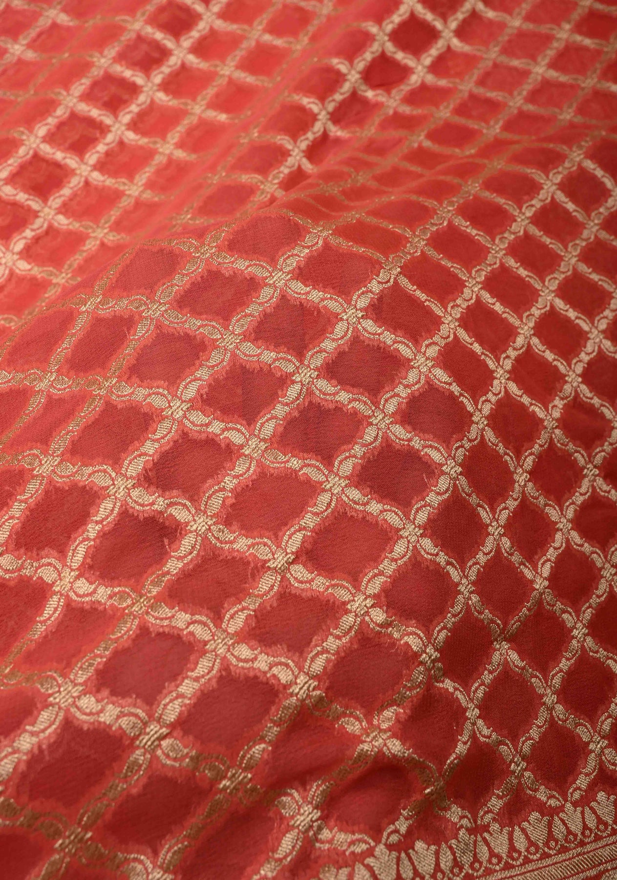 Orange Banarasi Georgette Silk Saree with Geomatric Jaal and Zari Border | SILK MARK CERTIFIED
