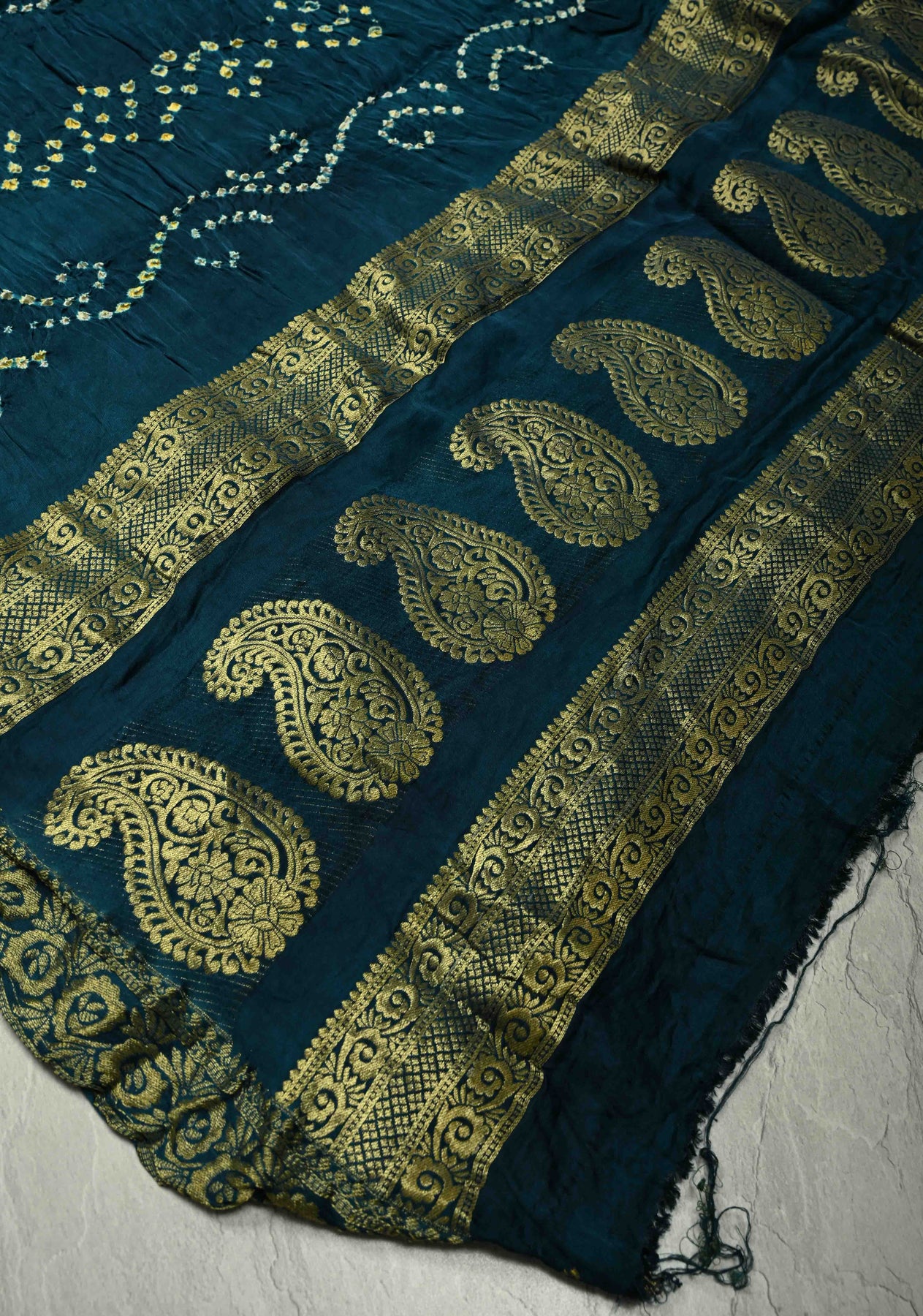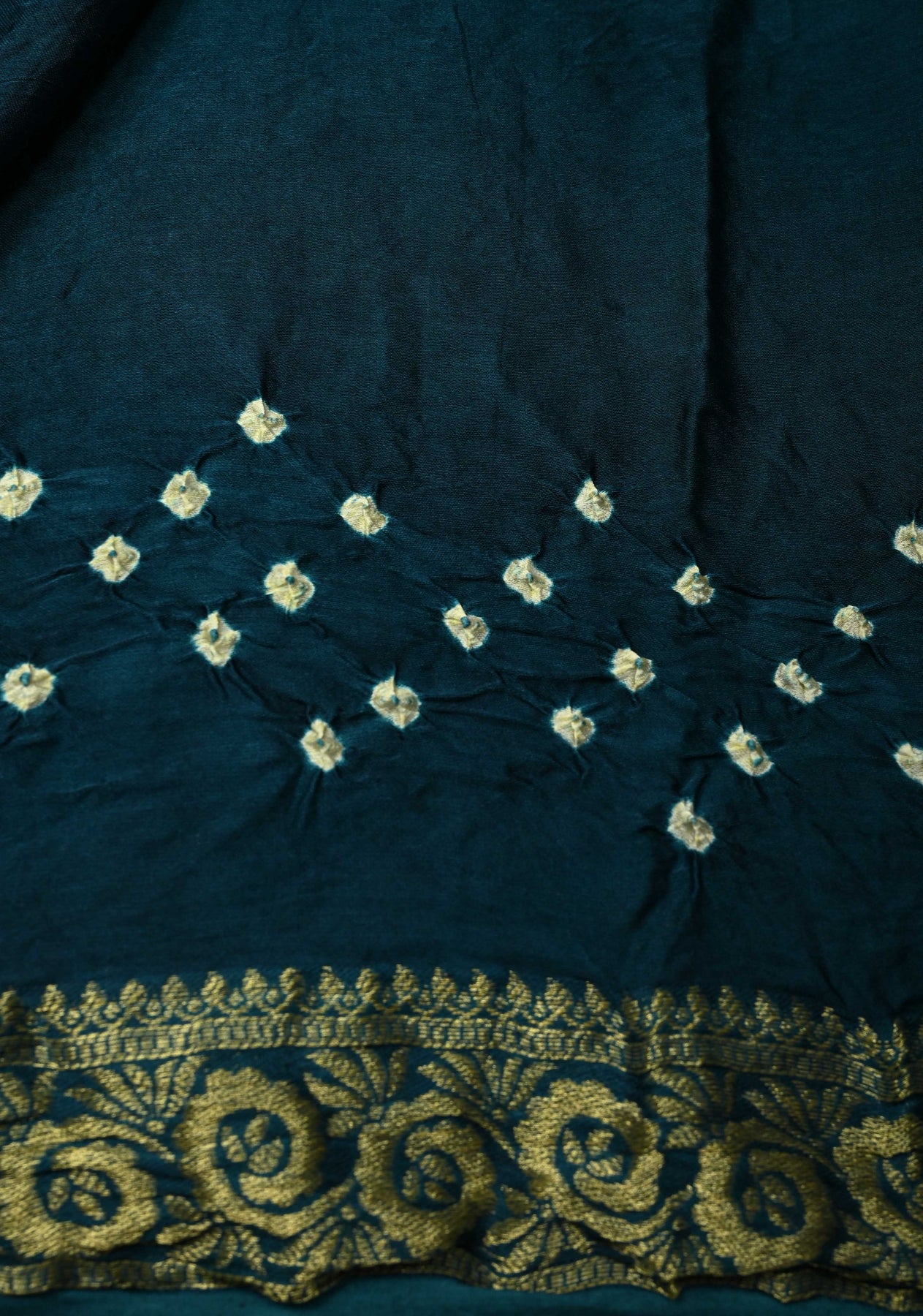 Peacock Green Modal Silk Saree with Sarkam Bandhej and Minimal Zari Border