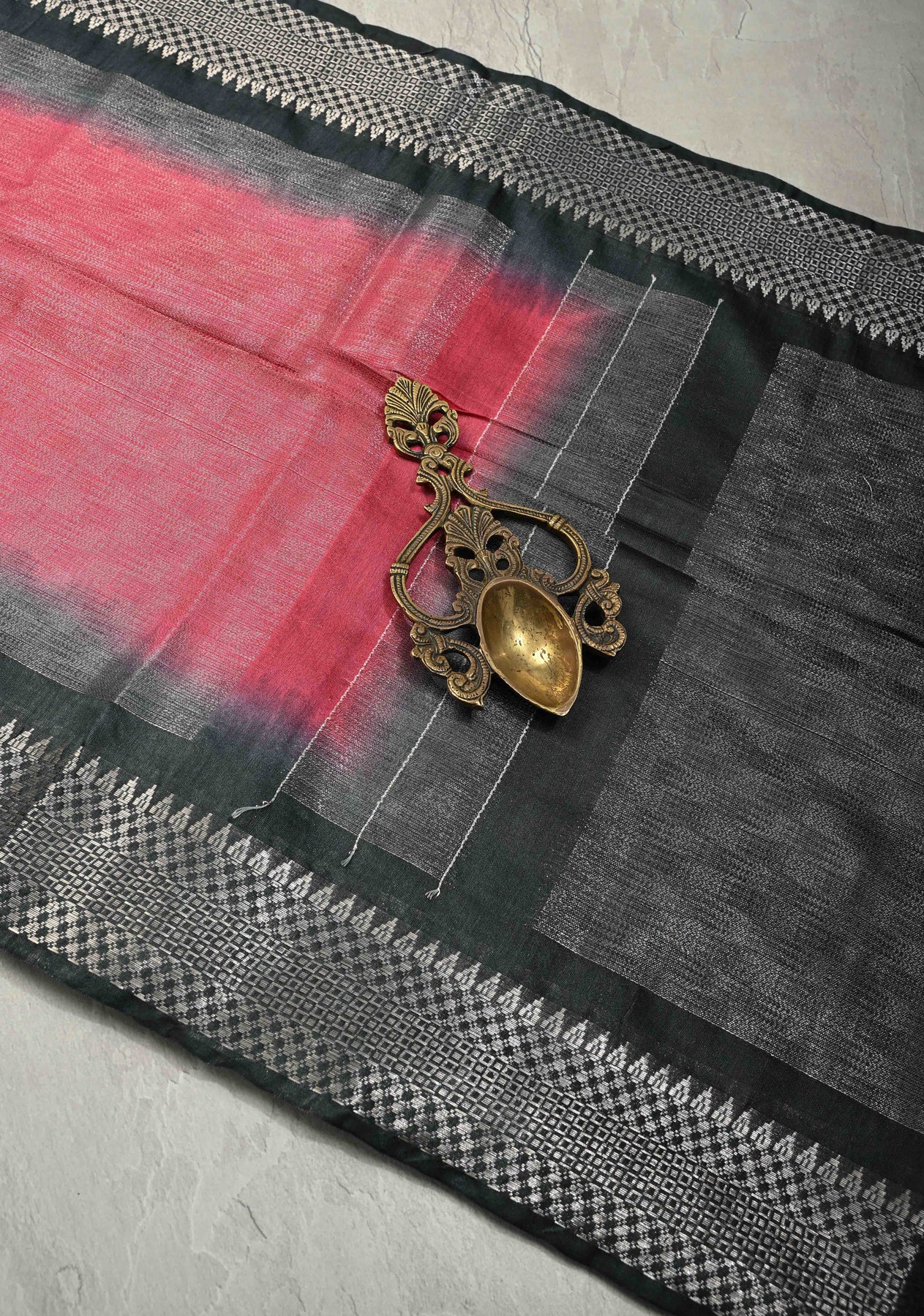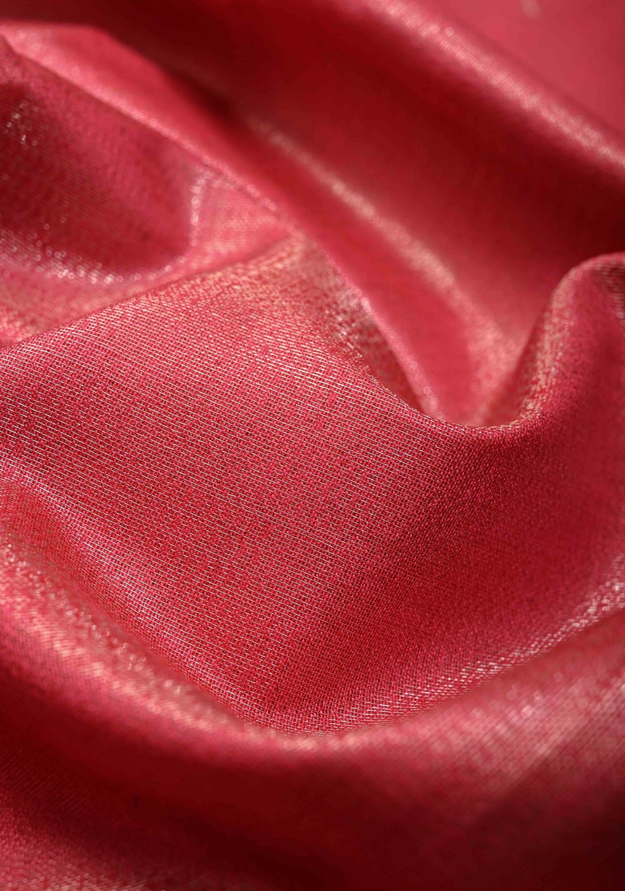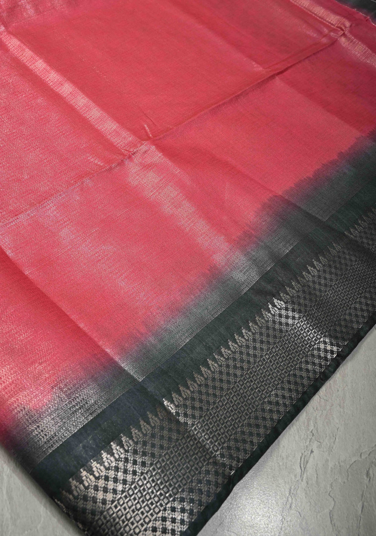 Raspberry Semi Tussar Tissue Saree with Contrast Zari Border and Pallu