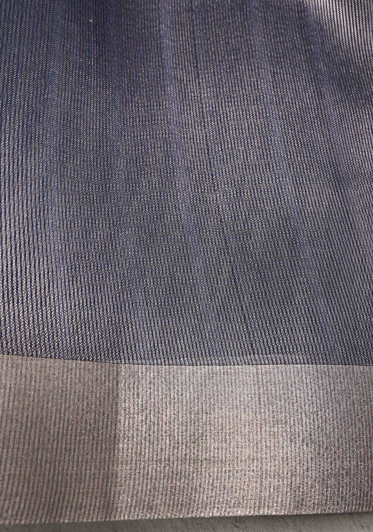 Royal Blue Semi Kora Saree with Tissue Stripes and Zari Border