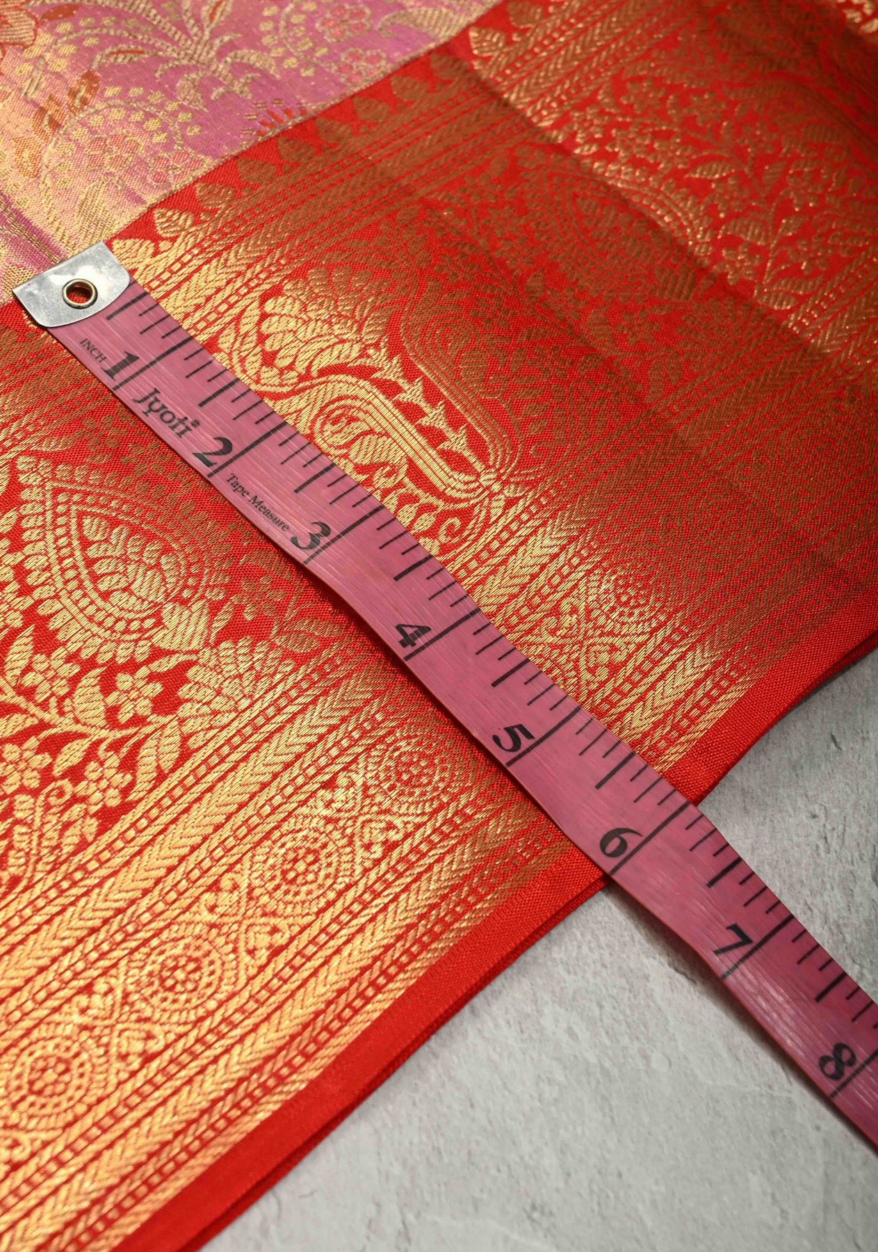 Exude timeless elegance with this Salmon Pink Tissue Kanjivaram Pure Silk Saree, beautifully crafted to showcase traditional artistry. Woven from tissue silk, the saree features intricate Meenakari floral brocade that adds rich detail and vibrant charm. The contrast zari border enhances its regal appeal, making it an ideal choice for weddings, festive celebrations, and special occasions. With its luminous texture and graceful drape, this saree is a perfect blend of sophistication and heritage. Style it with classic jewelry for a stunning traditional look.