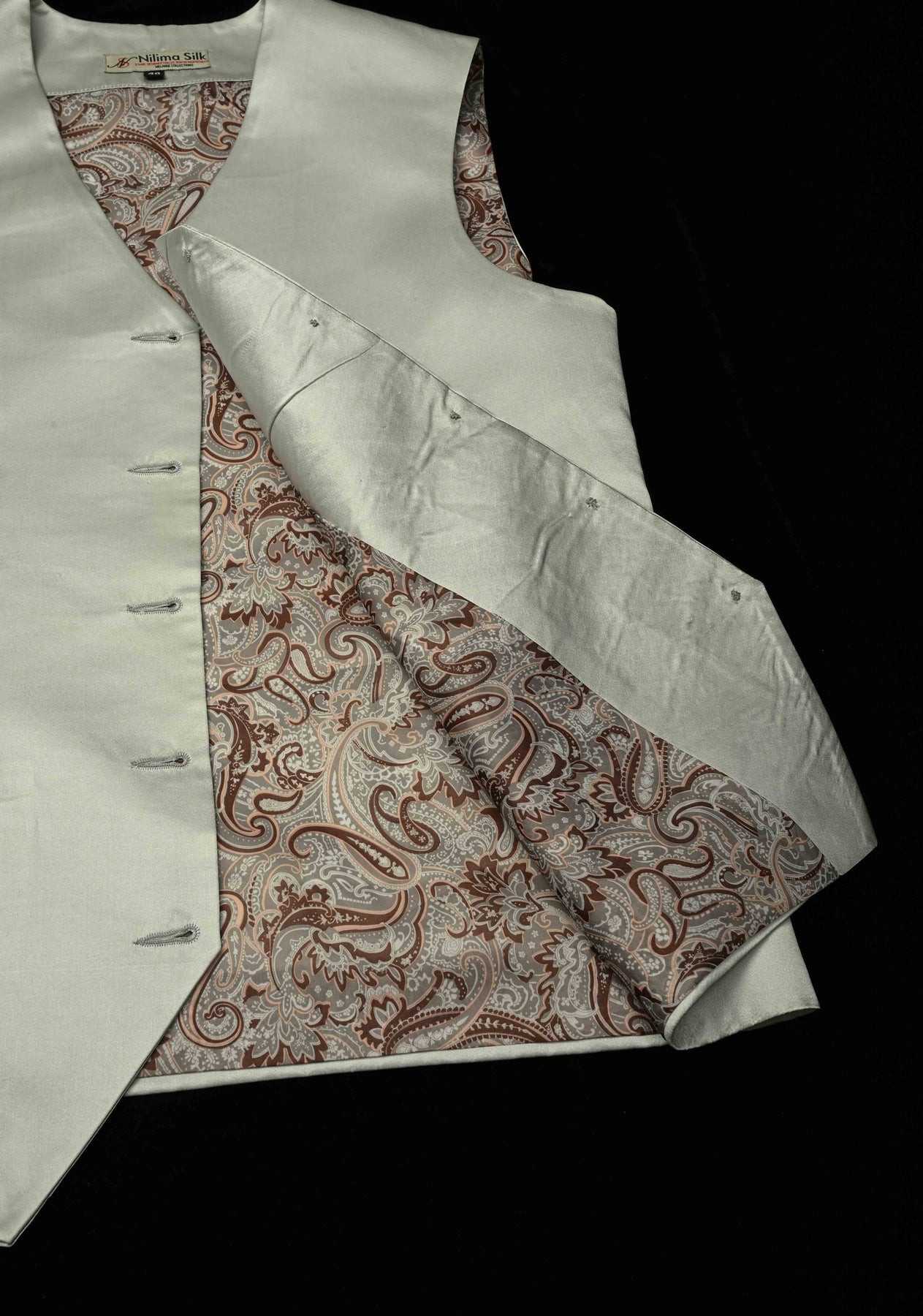Add a touch of refined elegance to your wardrobe with this Women’s Smokey Gray Silk Nehru Jacket / Waistcoat. Crafted from silk, it features a smooth sheen and a tailored silhouette that combines traditional charm with modern sophistication.