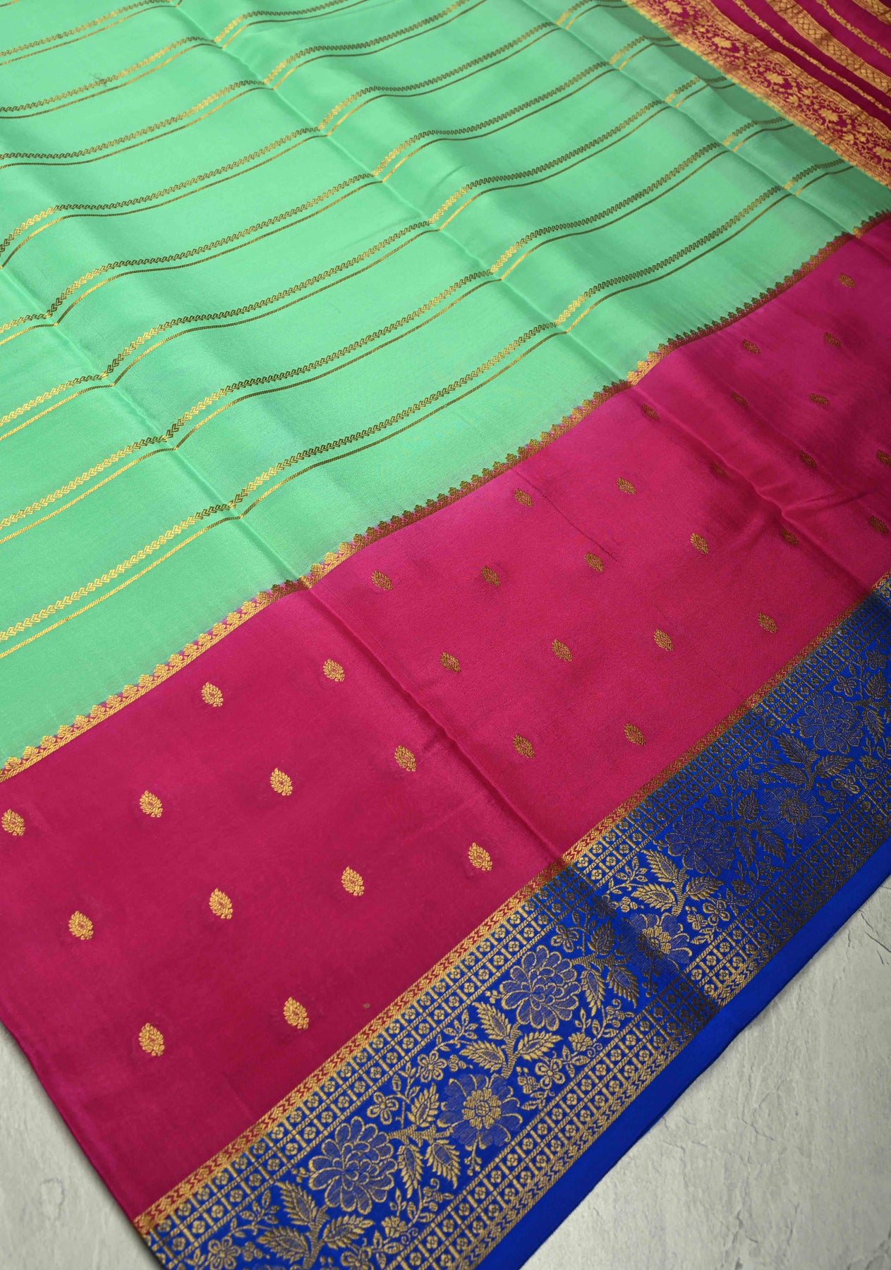 *Note: This is a handwoven saree and there may be slight inconsistencies such as in it's weaving. These are characteristic of handmade products and attest to their originality and are not considered as defects.