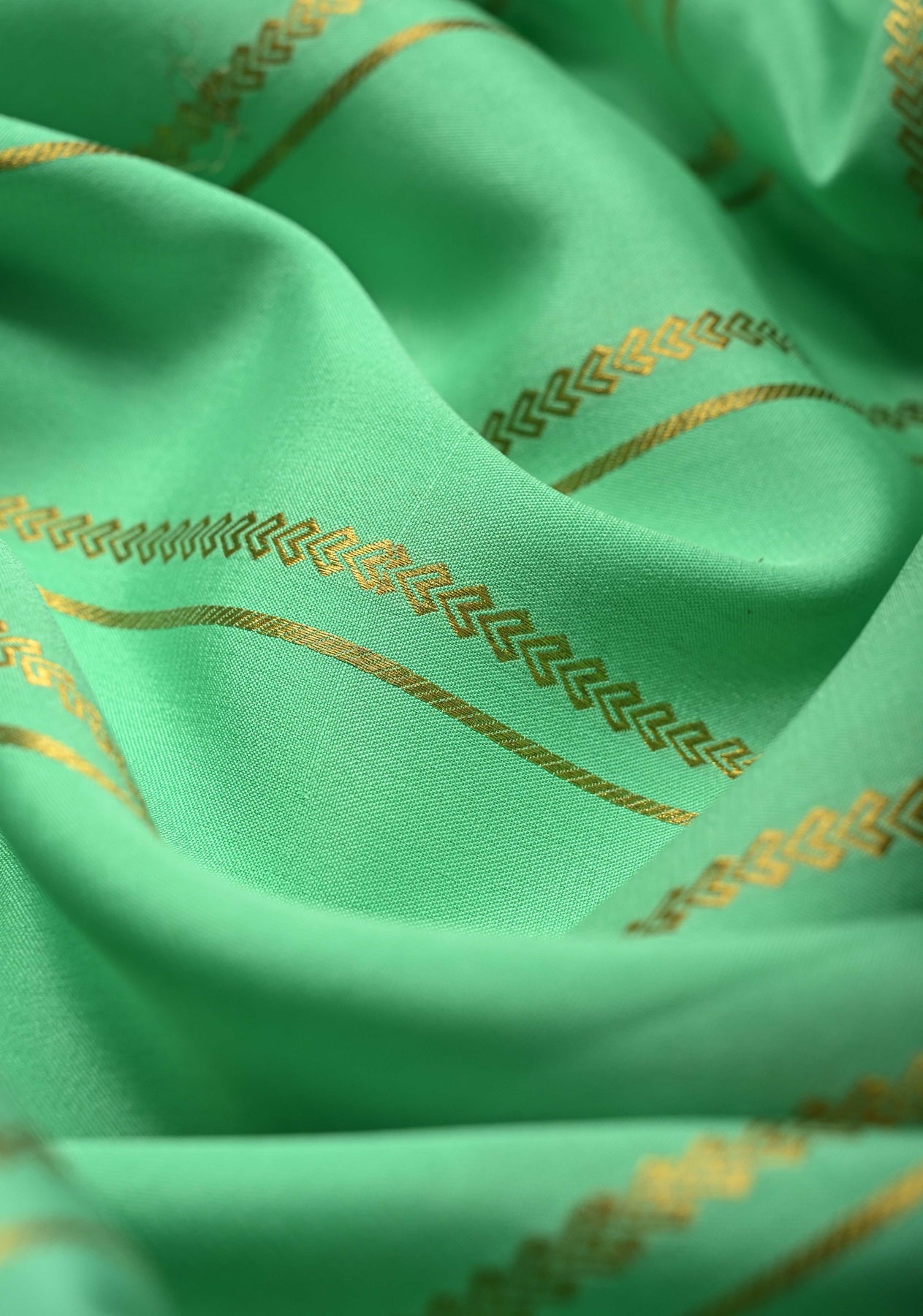 This radiant Spring Green Mysore Silk Saree exudes elegance and sophistication, making it a perfect choice for festive occasions and formal events. The smooth, lustrous silk drapes gracefully, showcasing the saree’s luxurious texture and signature Mysore silk sheen. Adorning the saree are horizontal zari stripes that add a subtle yet striking pattern across the vibrant spring green base, while the contrast zari border beautifully frames the saree, enhancing its traditional charm. Lightweight yet richly designed, this saree combines classic craftsmanship with modern style, making it ideal for weddings, celebrations, and special occasions where refined elegance is desired..