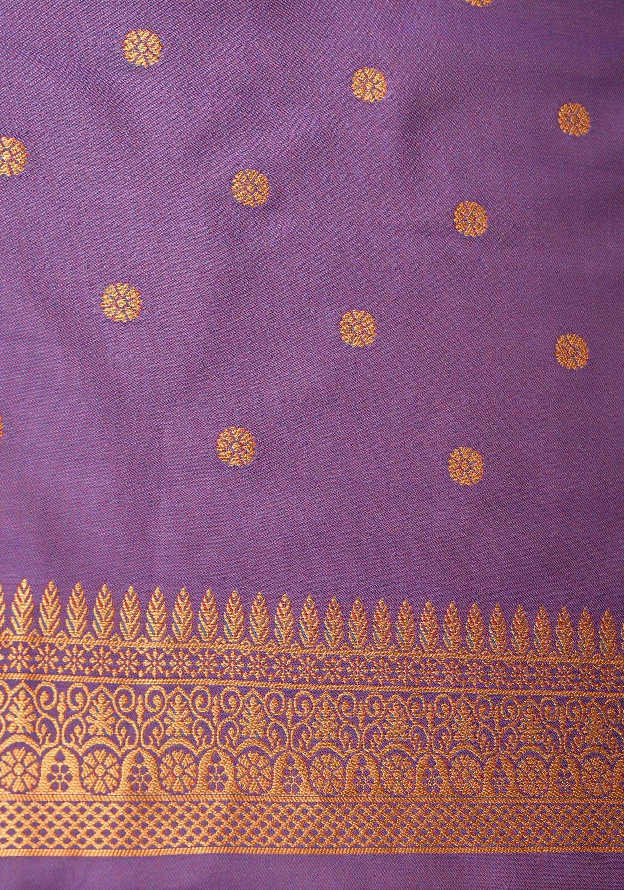 the pallu and add more grace to it. An unstitched blouse fabric is included.