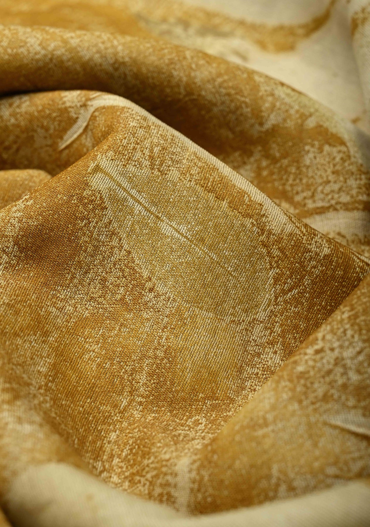Golden Yellow Leaf Eco print on Chanderi Silk Saree with Minimal Zari Border