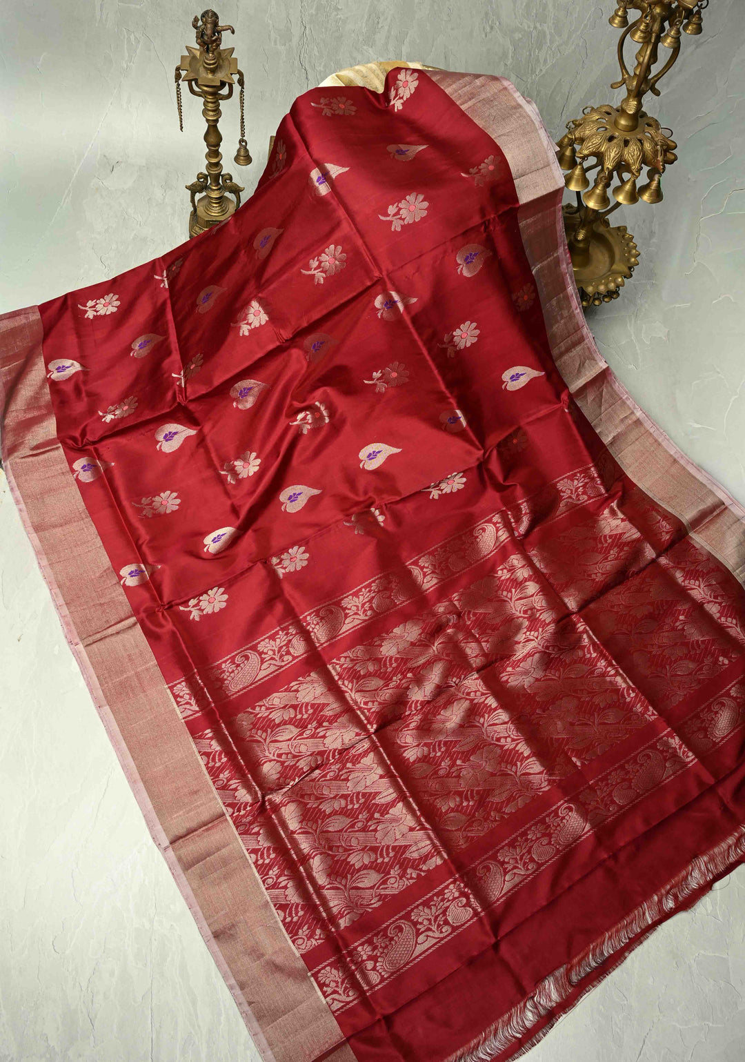 Maroon Uppada Handloom Silk Saree with Meenakari Buttas and Muted Tissue Zari Border| SILK MARK CERTIFIED