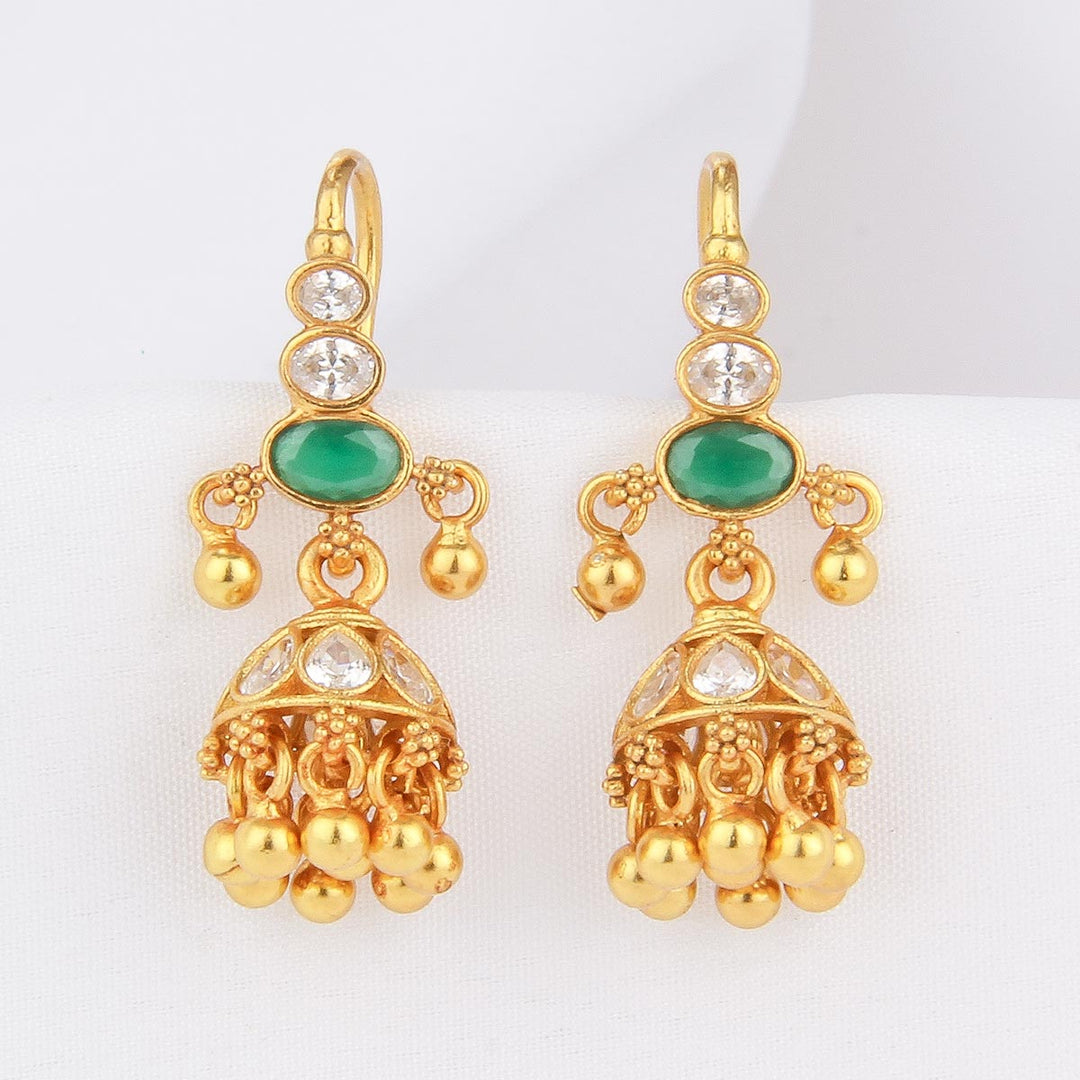 This 92.5 Silver, 24 kt Gold-Plated Earring is adorned with Semi-precious Stones for a luxurious aesthetic.