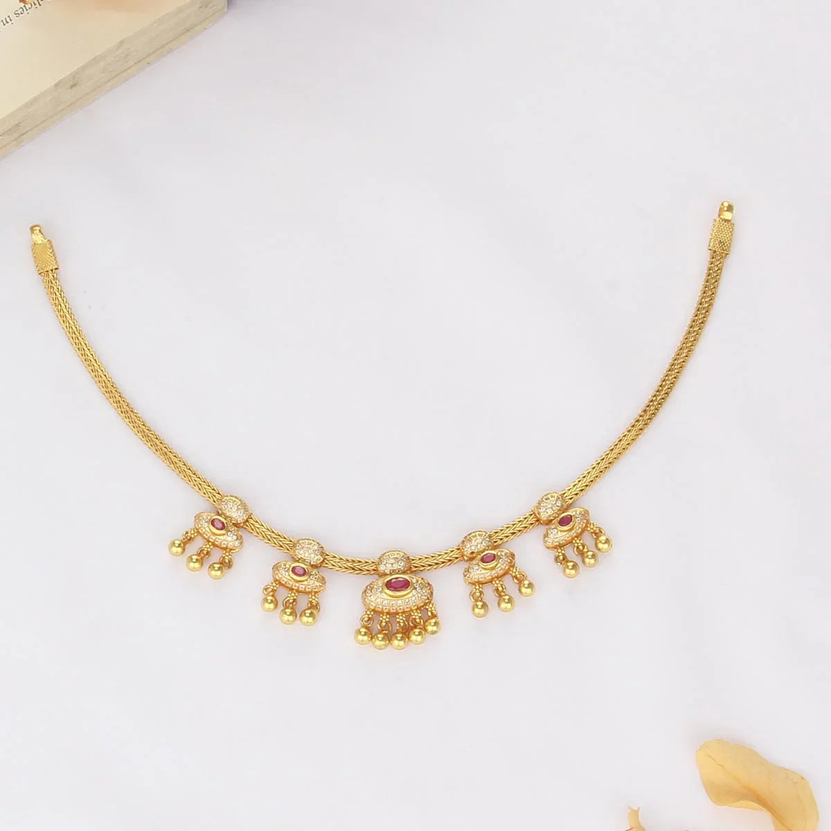 92.5 Silver, 24kt Gold Plated Dazzura Stone Short Necklace