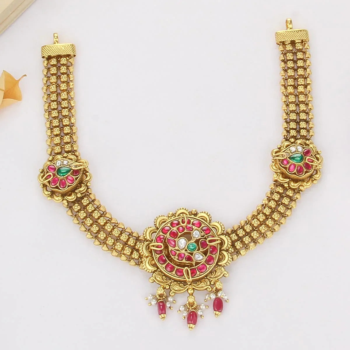 Elevate your style with this Majestic Look Nagas necklace. Crafted from 92.5 Silver and 24kt Gold Plated, this set boasts exquisite semi-precious stones for a dazzling effect.