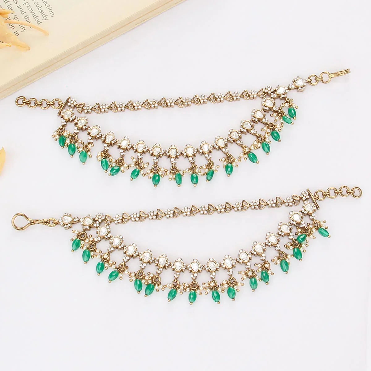 92.5 Silver, Victorian Maangtikka studded with Gem Stones and Pearls.