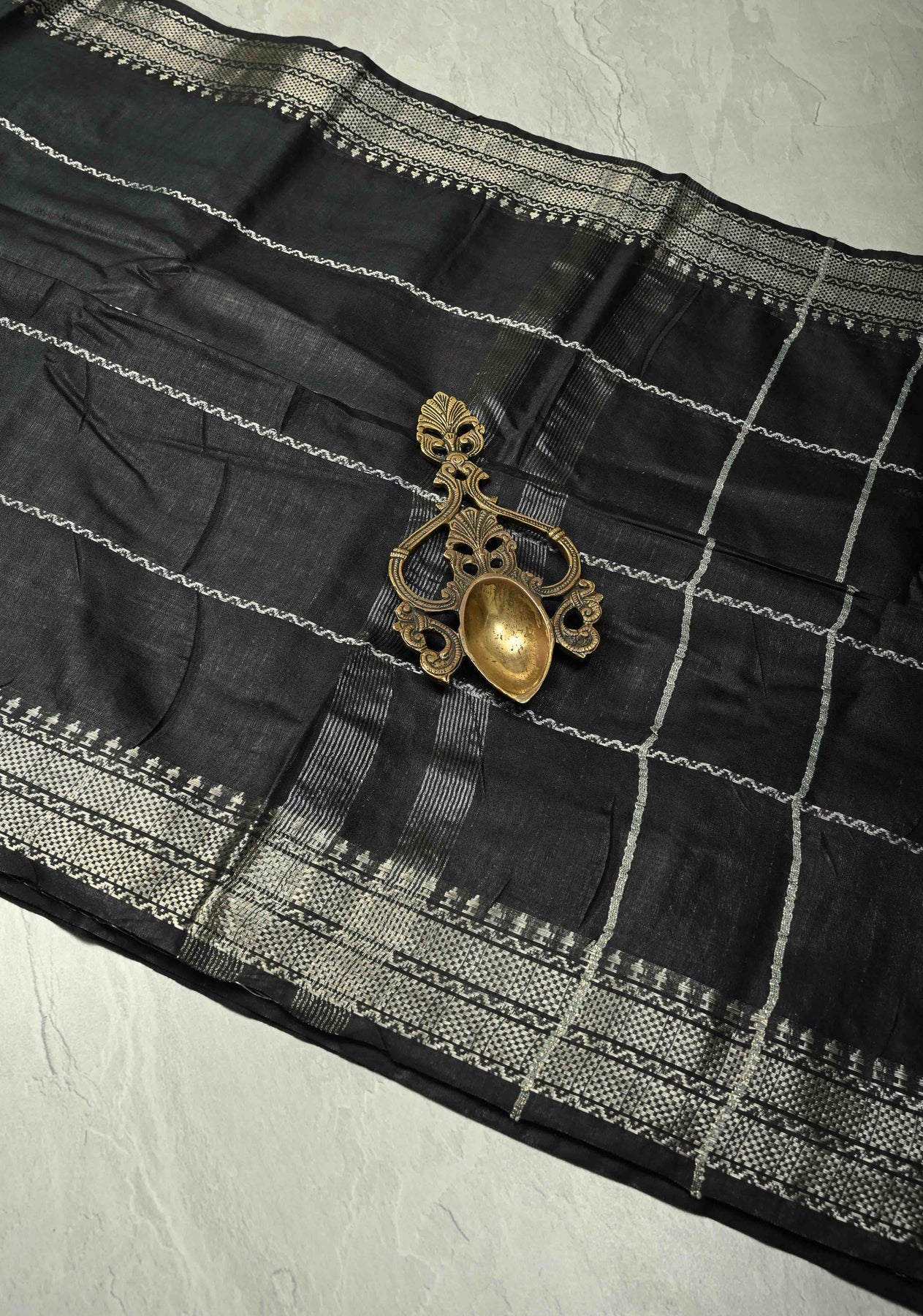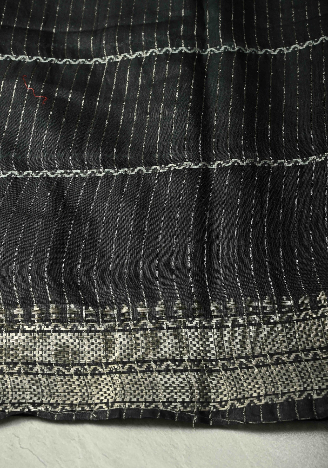 Black Semi Tussar Saree with Veldhari Stripes and Zari Border