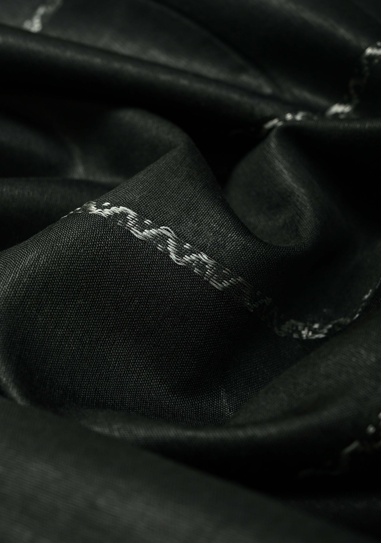 This elegant black Semi Tussar saree features a rich, textured fabric that exudes understated sophistication. The subtle sheen of the Semi Tussar silk adds depth and dimension to the garment, while the bold Veldhari stripes running across the body lend it a contemporary, stylish appeal. These stripes, woven with precision, create a stunning  the black background, adding a modern edge to the traditional drape. The saree is further enhanced with an intricate zari border, which brings a touch of regal charm and intricate craftsmanship to the overall design. The shimmering  threads, meticulously woven along the edges, add a timeless luxury and elevate the saree’s elegance. Perfect for formal events or festive occasions, this saree combines classic charm with modern aesthetics, making it a versatile and exquisite addition to any wardrobe.