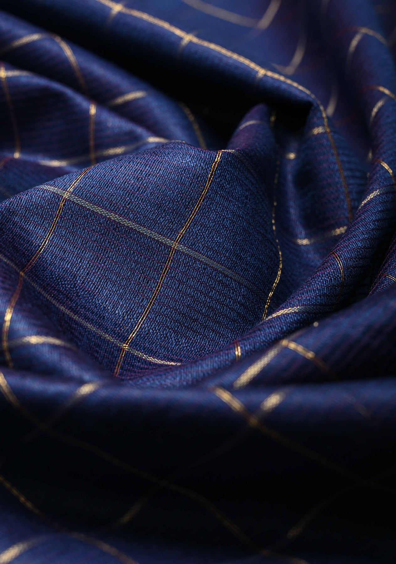 This stunning ink blue Semi Tussar saree effortlessly combines traditional elegance with a contemporary flair. The ink blue hue of the Semi Tussar fabric gives it a rich and sophisticated look, while the intricate zari checks pattern across the body adds a touch of refinement. The delicately woven zari border enhances the saree’s luxurious appeal, with its shimmering metallic threads in gold or silver adding a regal finish. Ideal for weddings, receptions, or festive celebrations, this saree is perfect for those who seek a timeless yet modern statement piece that radiates both style and grace.