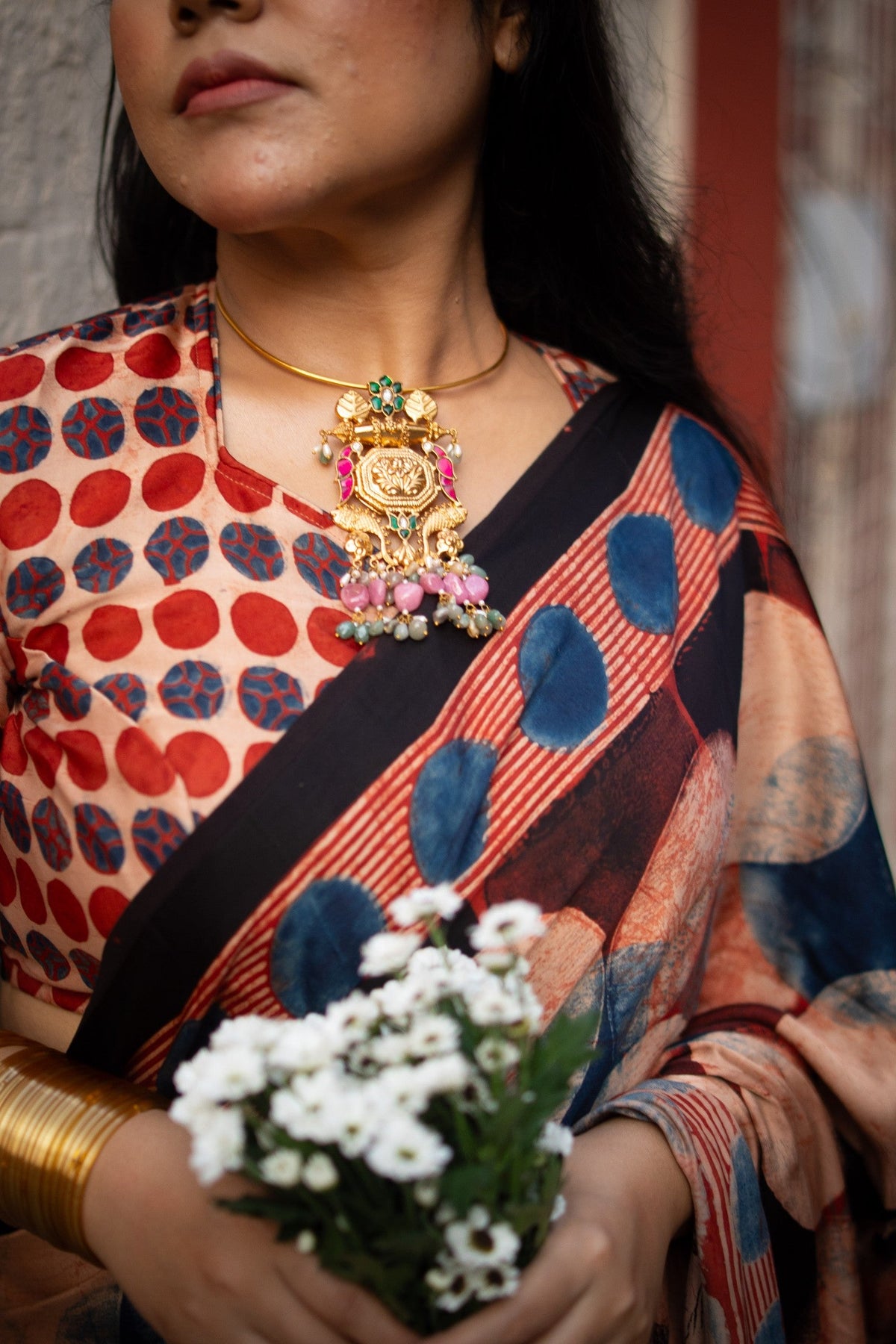 *Note: This is a handmade saree and there may be slight inconsistencies such as in it's weaving and print. These are characteristic of handmade products and attest to their originality and are not considered as defects.