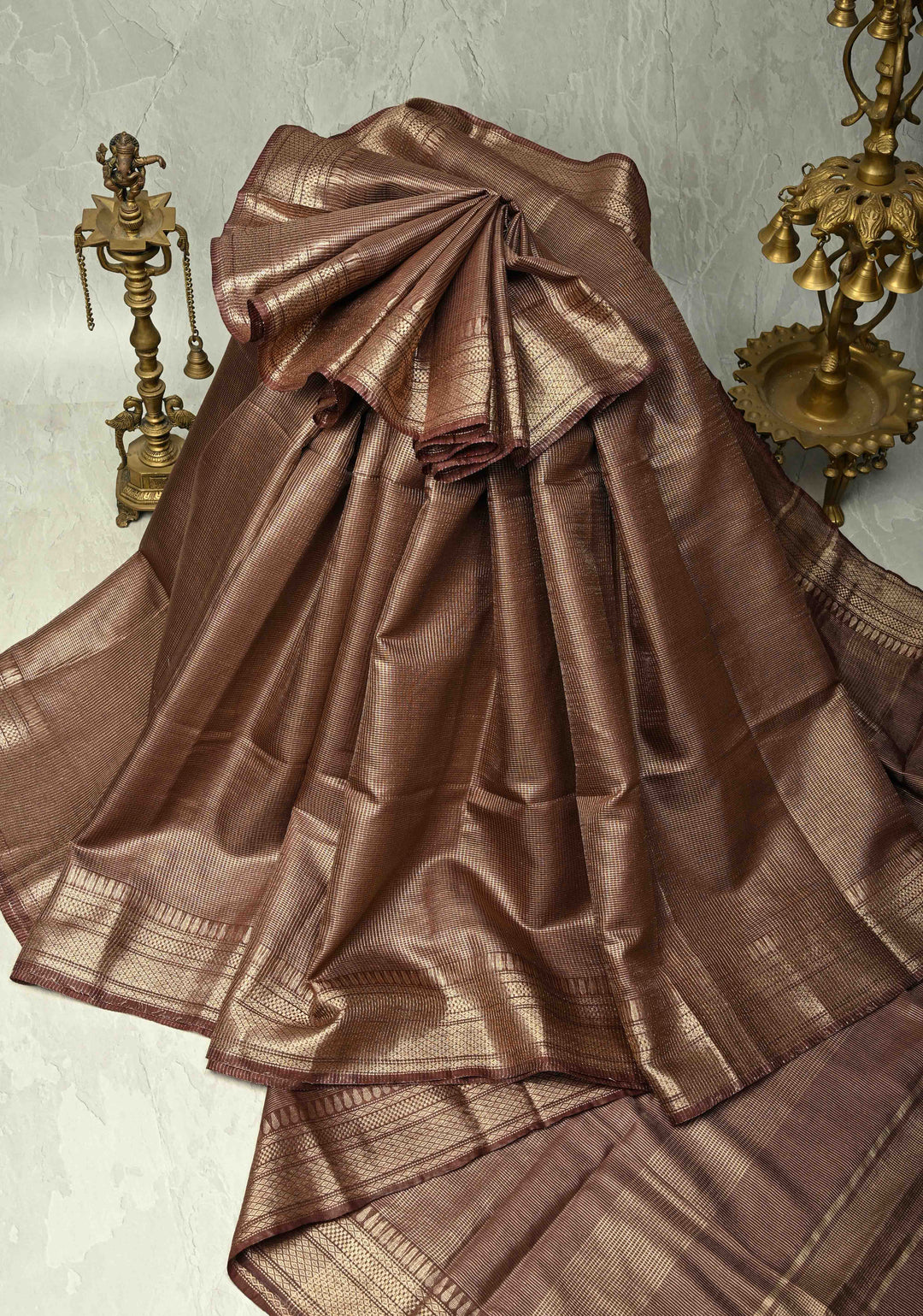 Brown Semi Tussar Tissue Saree with Zari Border