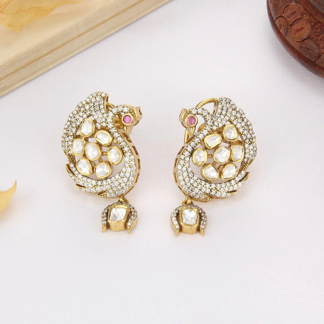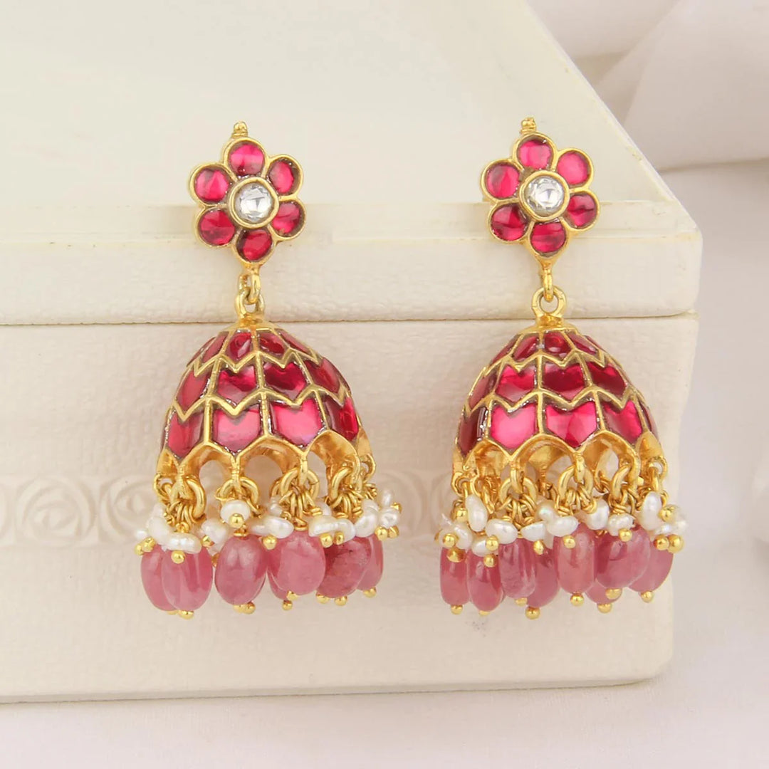 92.5 Silver, 24 kt Gold Plated Shrika Kundan Jhumkas
