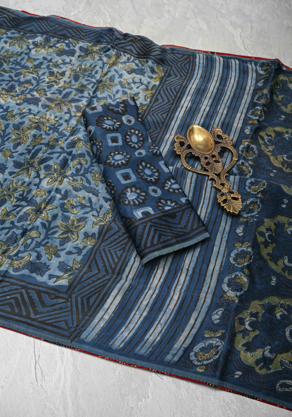 Indigo Modal Silk Saree with Ajrakh Hand Block Print and Sequins Cutdana Handwork
