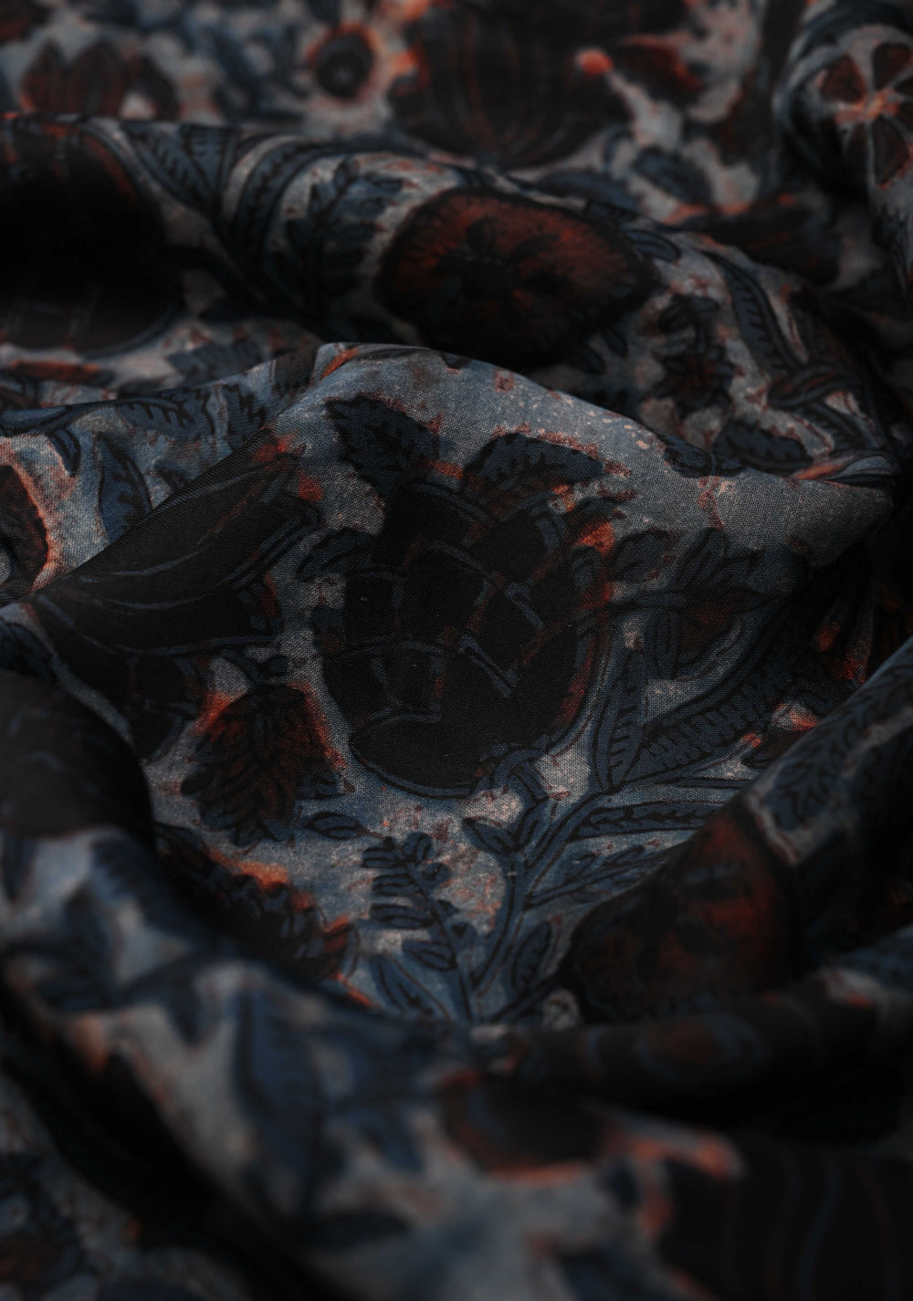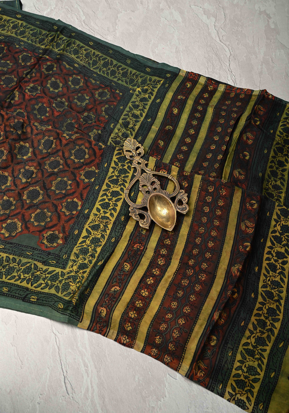 Burnt Umber Vanaspati Hand Block Print on Modal Silk Saree