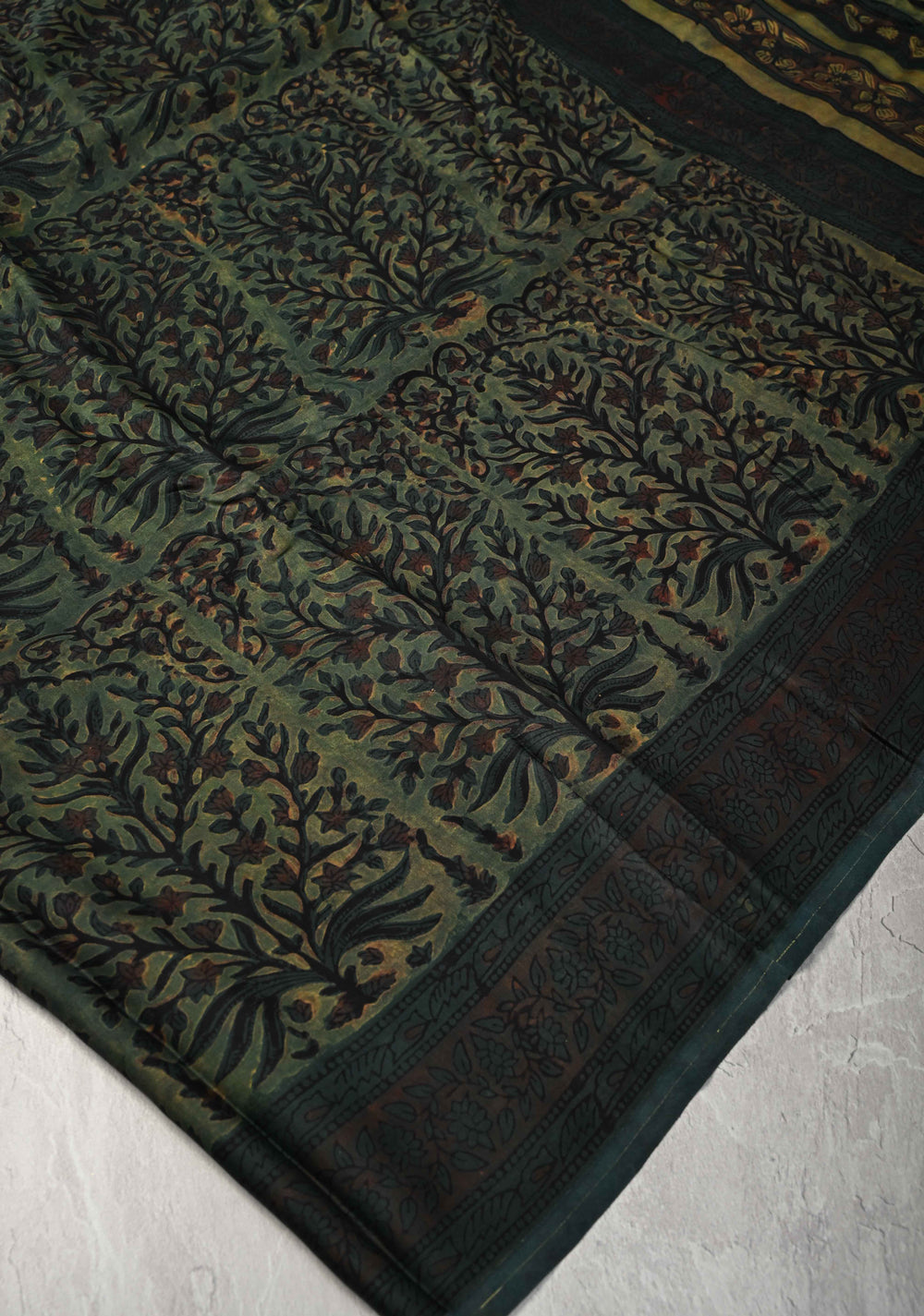 Green Vanaspati Hand Block Print on Modal Silk Saree
