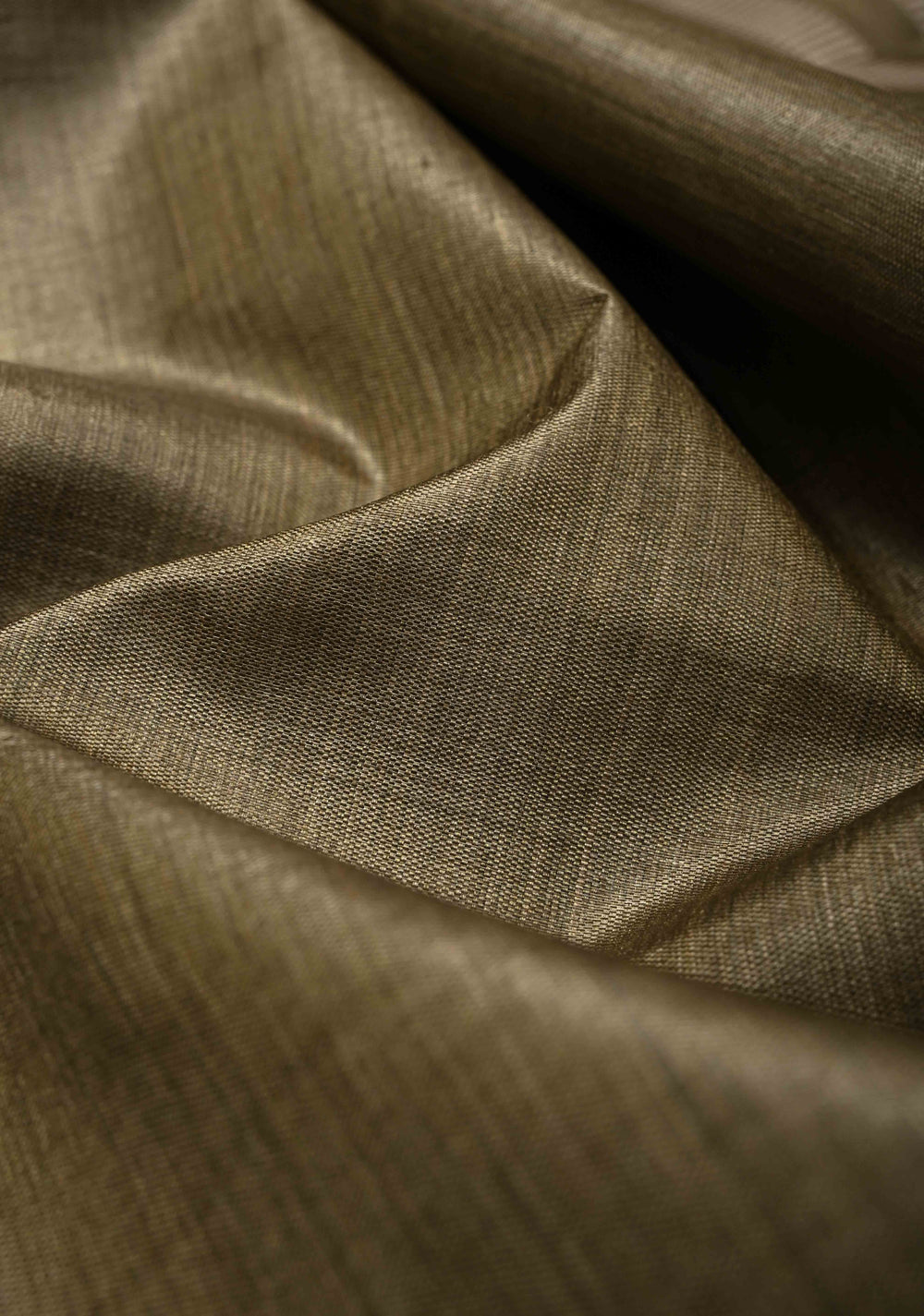 Wood Brown Tussar Silk saree with Vertical Resham Stripes on Border | SILK MARK CERTIFIED